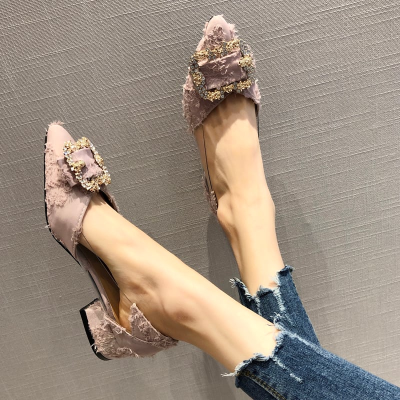 スプリングサマーレッドラインストーンバックルスクープシングル 靴 シューズ 春物 夏物 スクウェア 部族の婦人靴4498941