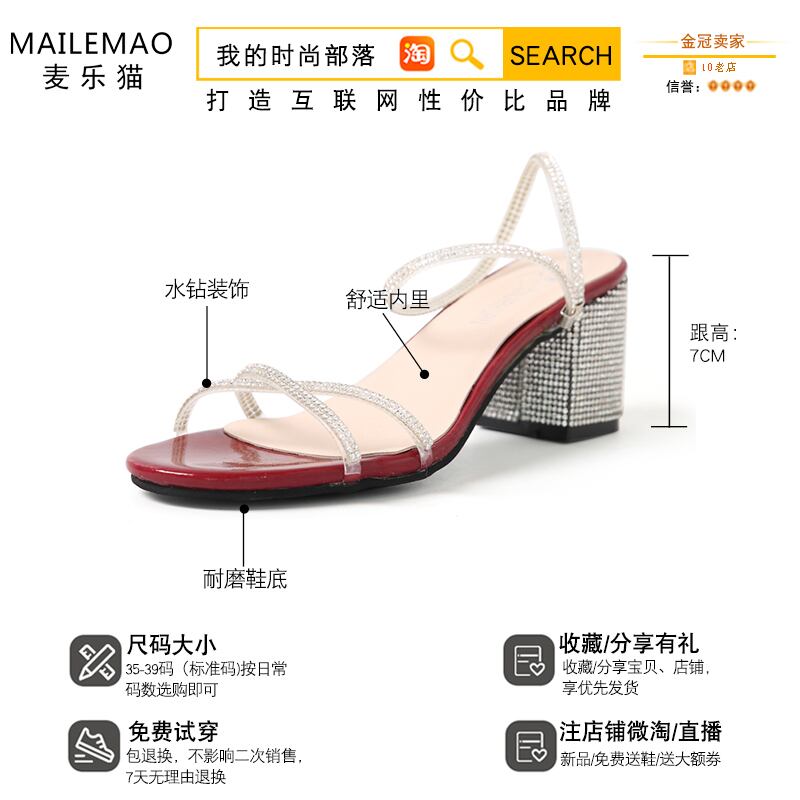 サマーラインストーンサンダルスタイルレッドヒール ハイヒール 靴 シューズ 夏物 部族の婦人靴7355491