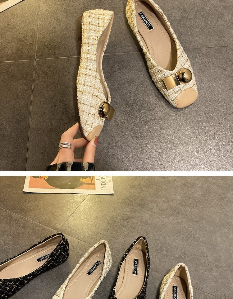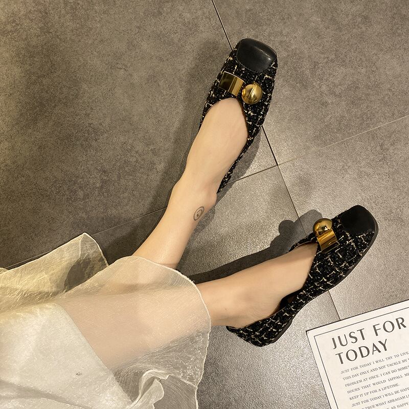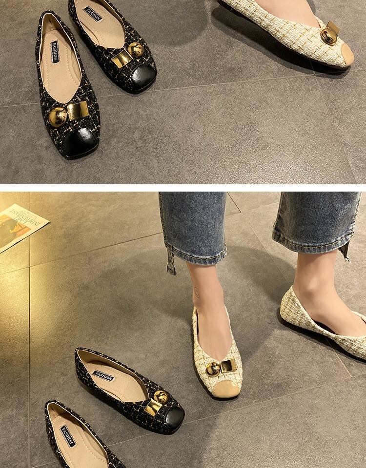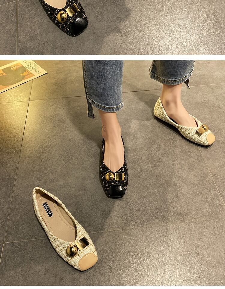 浅い口の靴女性2020春モデルの新しいネット赤の小さな香りのスタイルの女性の靴カバー足スクープシューズフラットボトムエンドウ豆の靴の潮 部族の婦人靴9210756