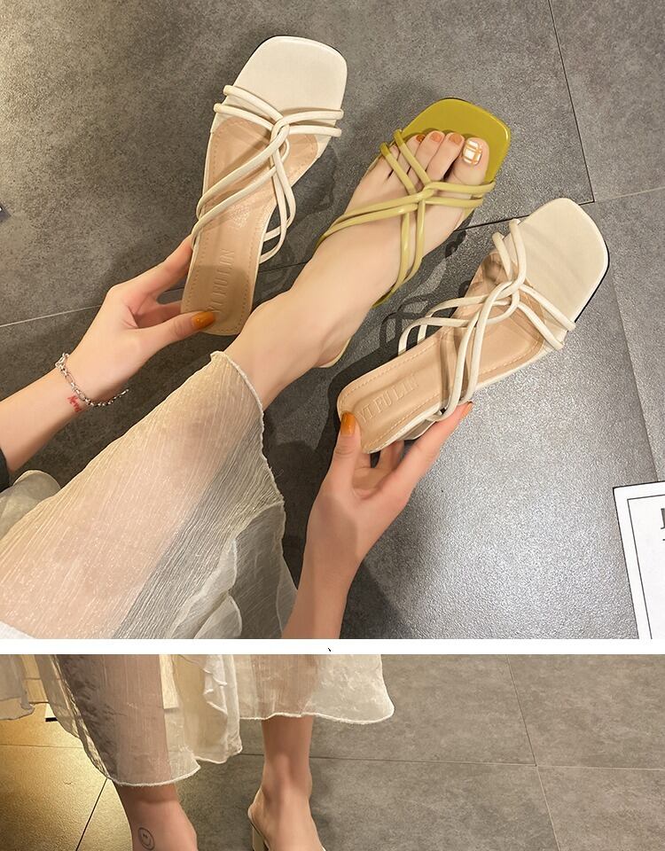 スリッパの女性は正方形のヘッドネット赤い妖精風スリッパ女性と野生のローマの厚い2020年夏の新バージョンを着用します 部族の婦人靴6503953