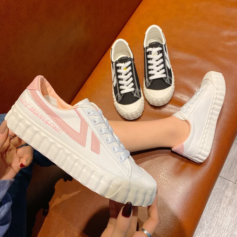 できる白い靴女性2020春野生のカジュアルシューズ厚底カジュアルシューズ学生ラウンドヘッドキャンバスシューズ潮 部族の婦人靴4739040
