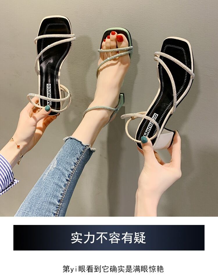 女性のファッションサンダル2020春と夏の新しいファッション厚い妖精風ネット赤い野生のラインストーンハイヒールの女性 部族の婦人靴6927936