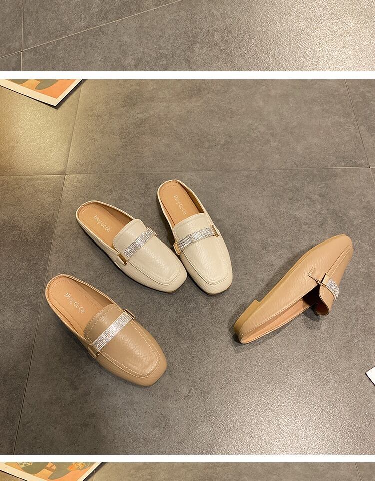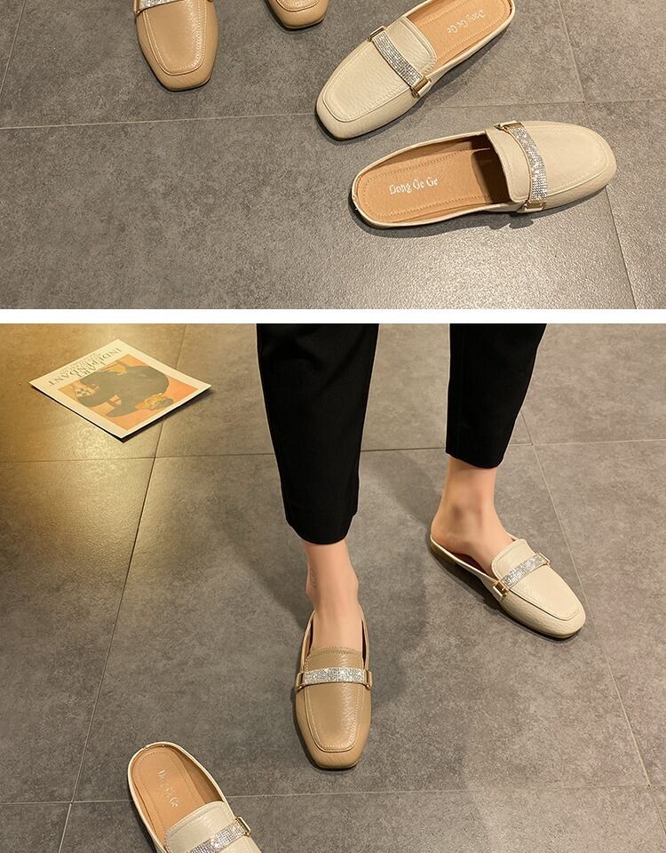 包頭ハーフスリッパ女性の夏の摩耗2020新しいファッションネット赤の正方形のヘッドラインストーンセクシーなフラットミュールサンダル 部族の婦人靴5117897