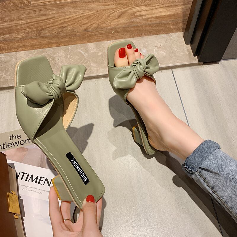 スリッパレディースサンダル2020春カジュアルネットレッドセミドラッグオープントゥハイヒールシューズおしゃれワイルドレディースシューズ 部族の婦人靴6258637