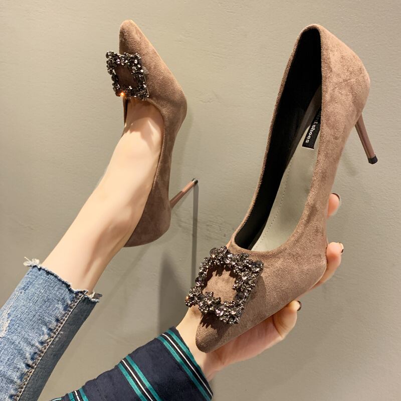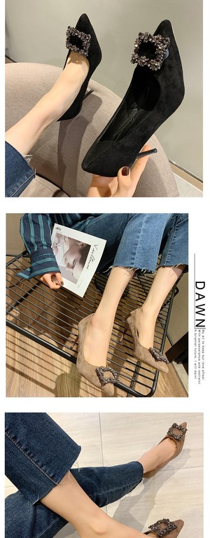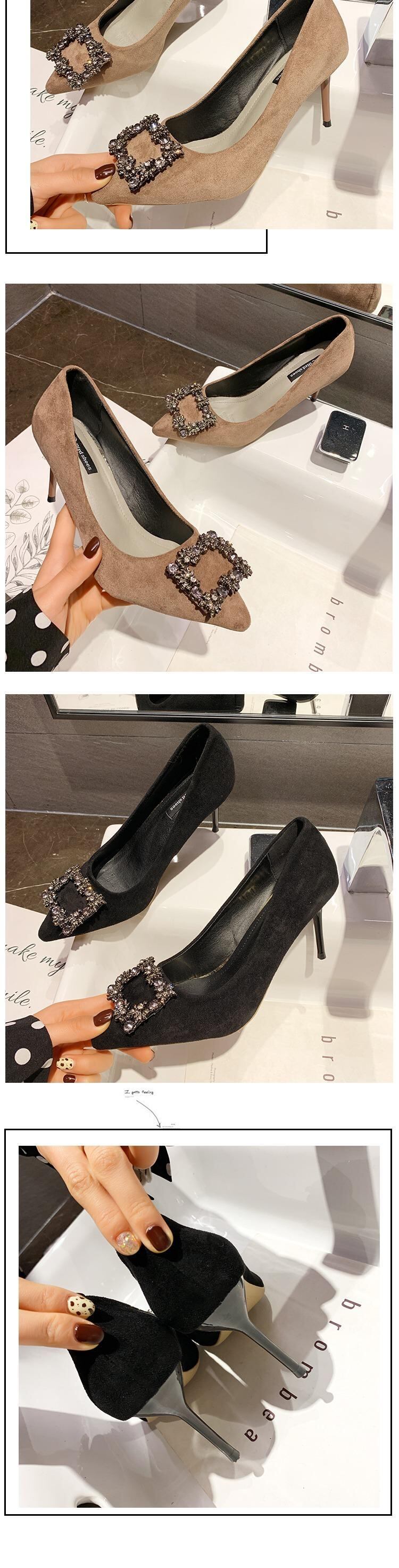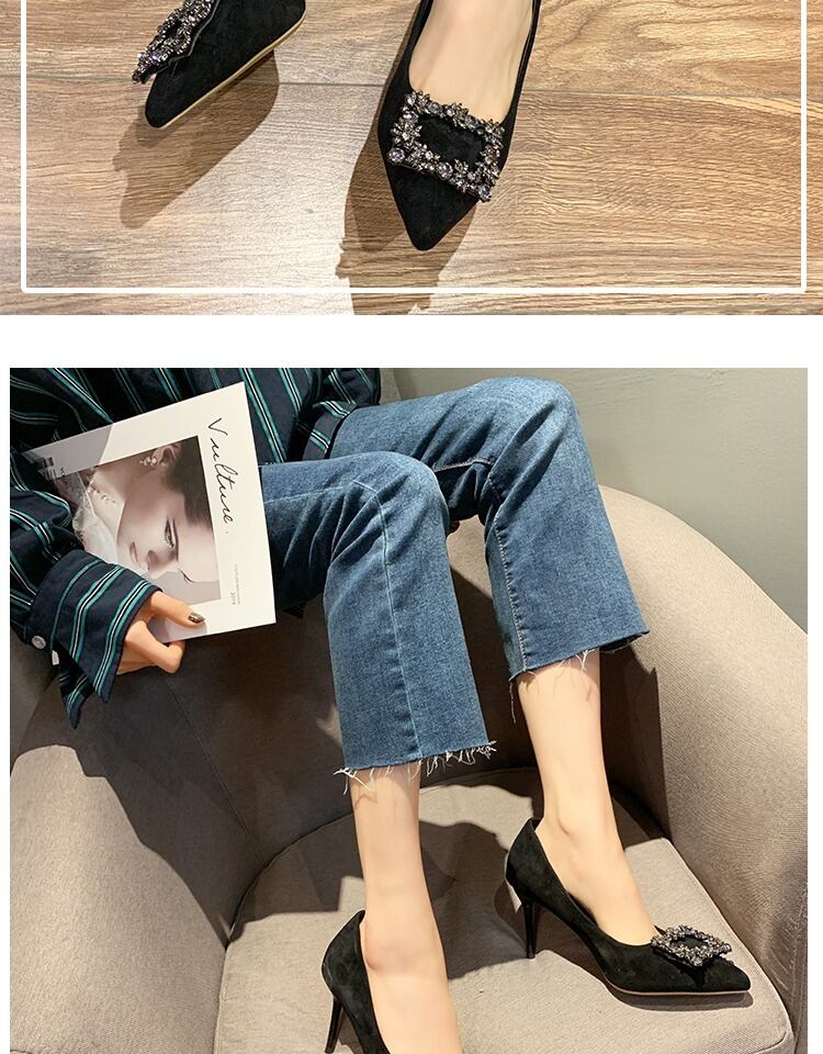 ネット赤指摘シングルシューズ2019新しいハイヒールラインストーンファインヒール黒作業靴野生の花嫁介添人の結婚式の靴 部族の婦人靴6097322
