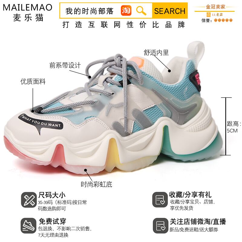 insスーパーファイヤーパパ靴女性2020春と夏の新しいネット赤レインボー厚底スポーツシューズ学生レースカジュアルシューズ 部族の婦人靴7855134