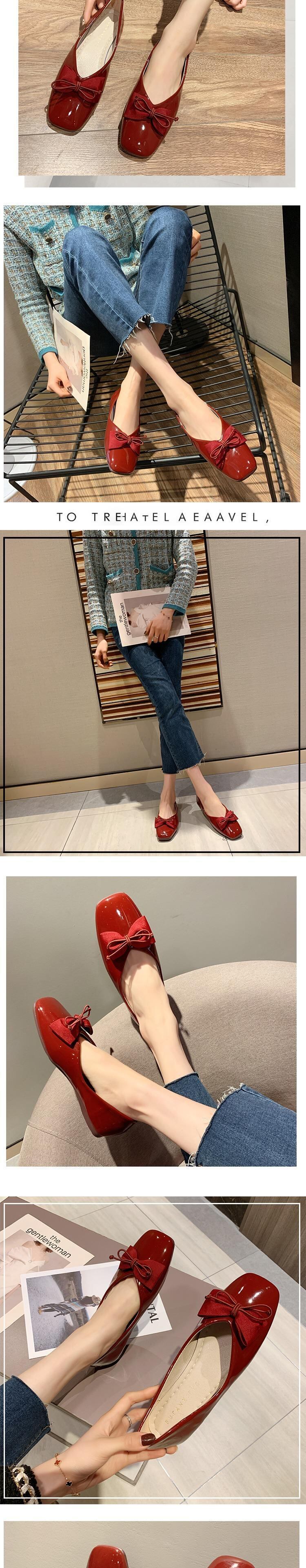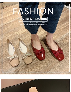 シングルシューズ女性2020春の新しいinsネット赤バージョンスクエアヘッドボウフラットボトムワイルドワンペダルエンドウシューズ 部族の婦人靴5141186