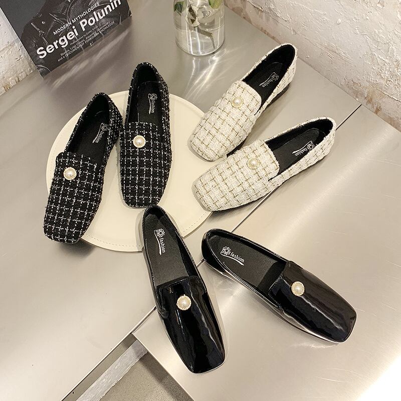 黒の正方形の頭の浅いエンドウ豆の靴女性2020年春と秋の新しいファッション野生のカジュアルなバージョンの小さな香りの女性の靴 部族の婦人靴1866533