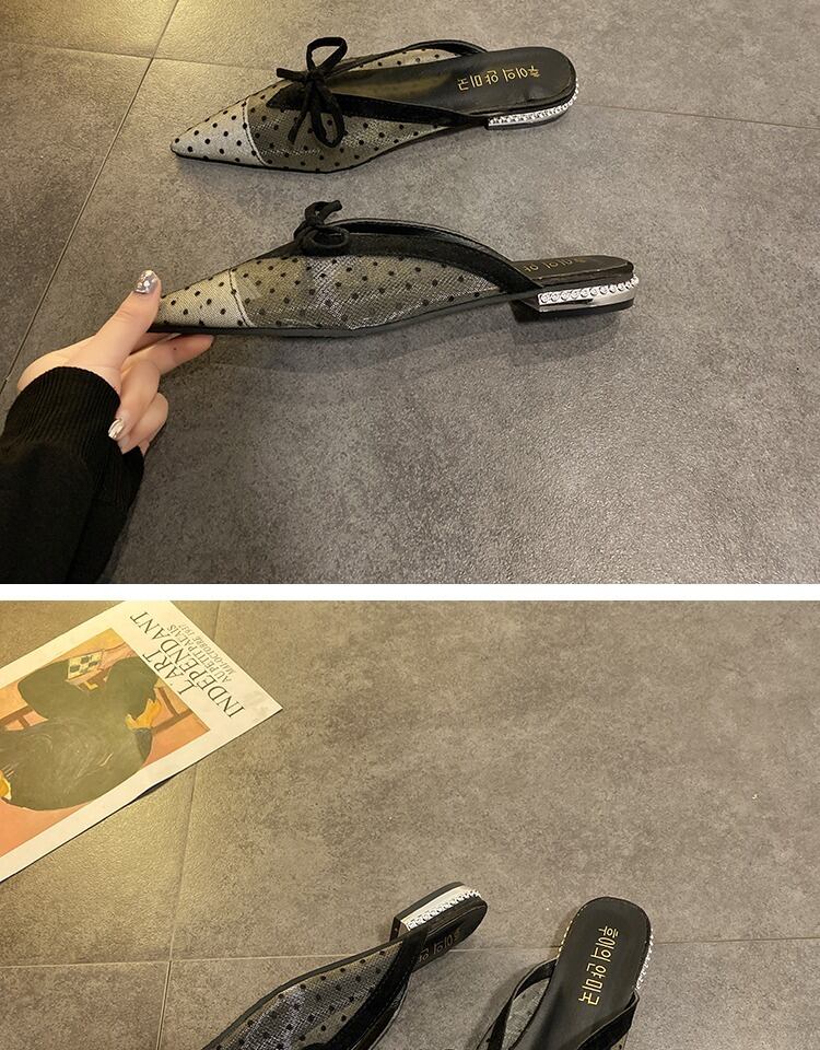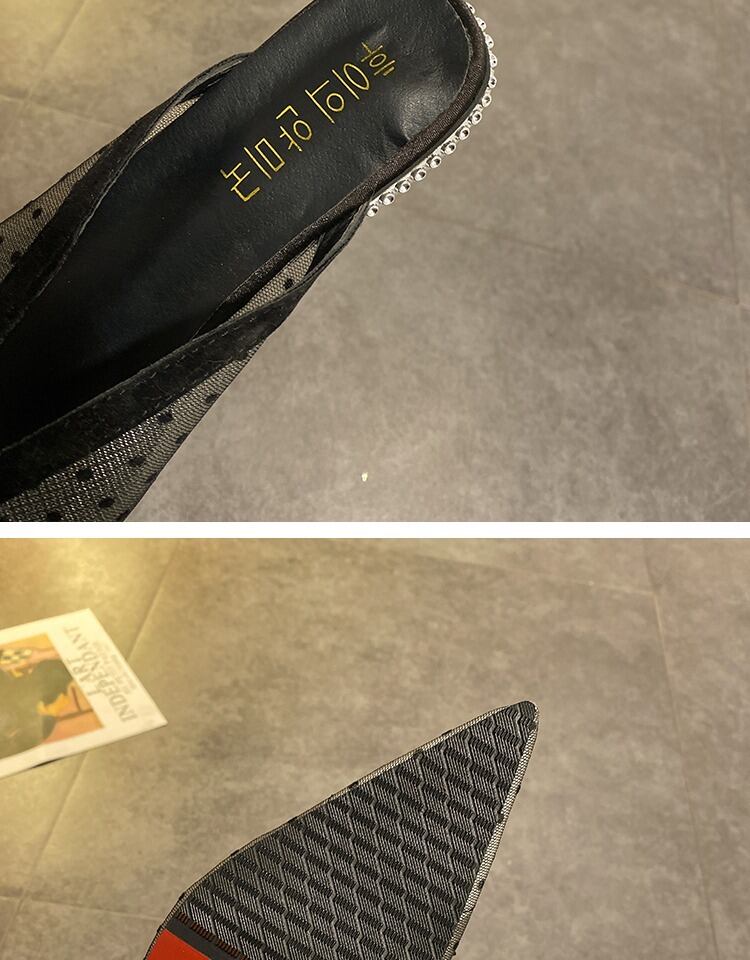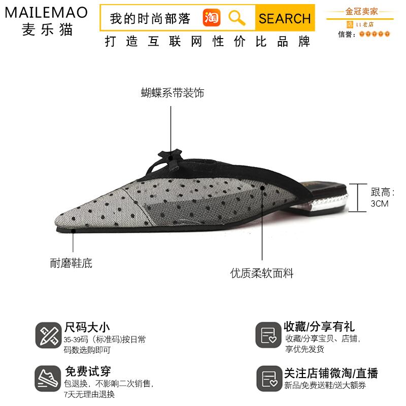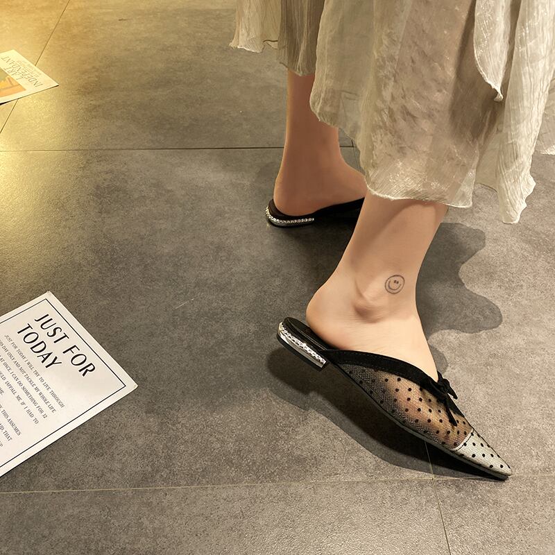 ホウトウハーフスリッパアウターウェア2020新しい春と夏の通気性のあるメッシュガーゼサンダルレイジーヒールドラッグなし 部族の婦人靴2065425