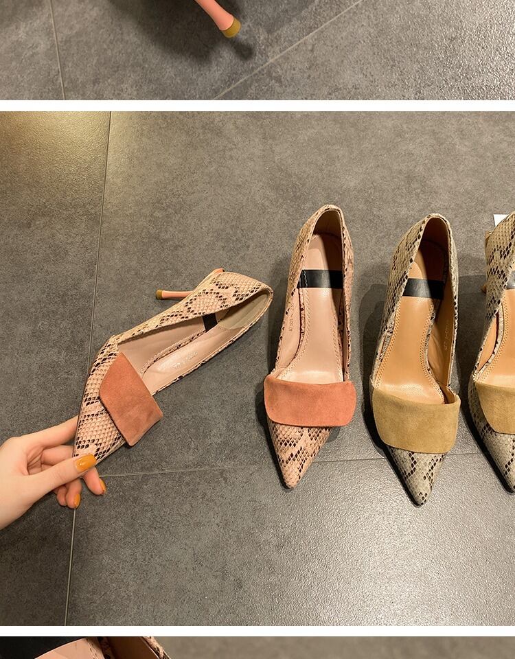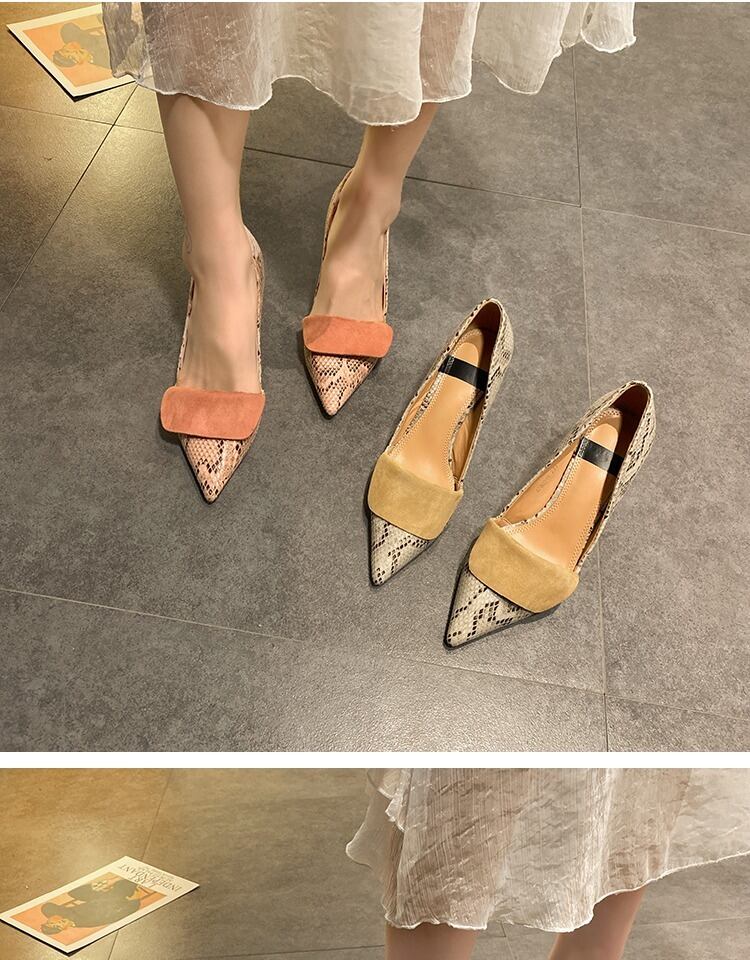 ヒールレディースファインヒールセクシーヒョウカラーマッチングポインテッドヘッドネットレッド2020春新しいフレンチ浅い口シングルシューズ 部族の婦人靴1708982