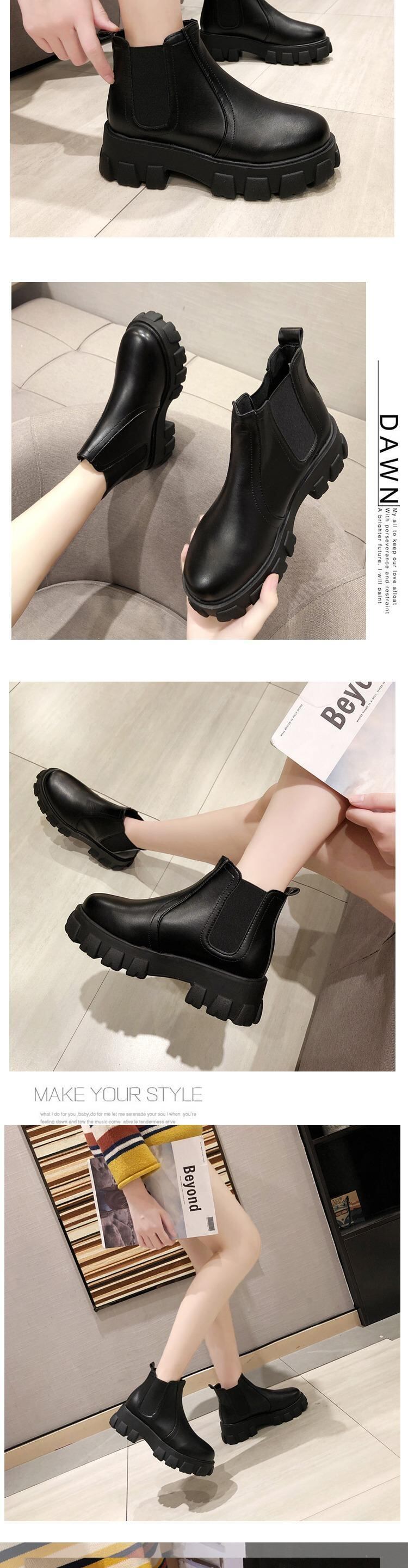 チェルシーショートブーツレディース2019秋冬新型ショートブーツ厚底厚底マーチンブーツブリティッシュカレッジスタイルシングルブーツレザーブーツ 部族の婦人靴4361523