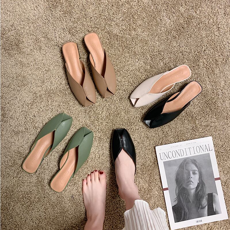 包頭ハーフスリッパ女性の摩耗2020夏の新しいinsネット赤いスリッパスクエアヘッド野生のフラットサンダル女性 部族の婦人靴8612668