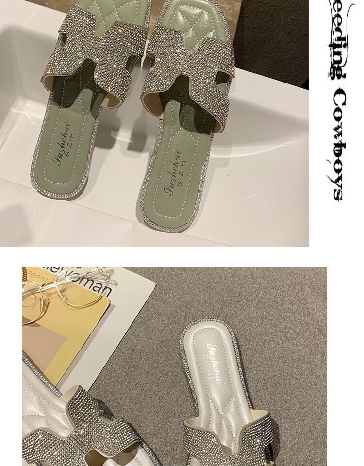 2020夏の新しいバージョンのラインストーンスリッパファッションフラットボトムワードドラッグ女性摩耗オープントゥ気質サンダルとスリッパ女性 部族の婦人靴5591087