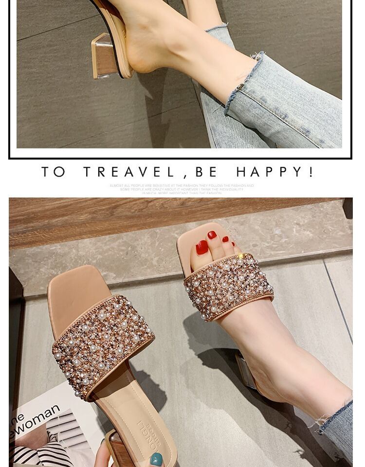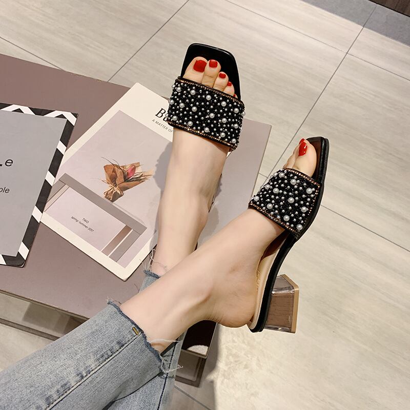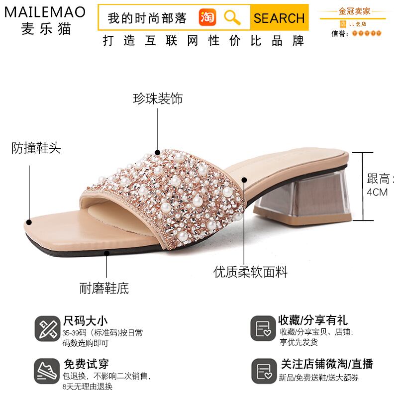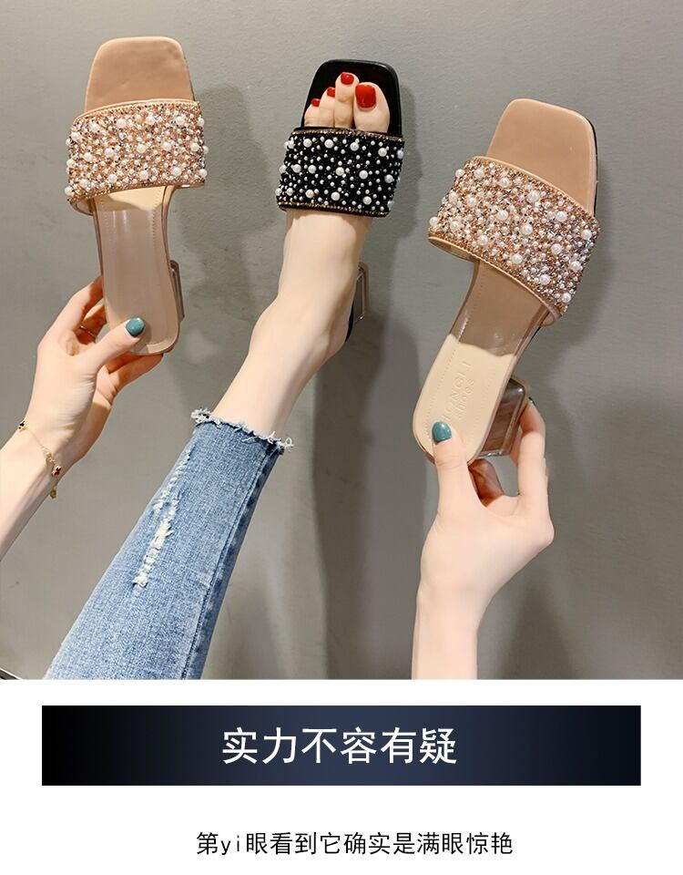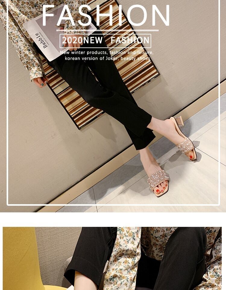 純赤のサンダルとスリッパの女性は、オープントゥのスリッパで2020年の新しい春のファッションラインストーンの野生の厚さを身に着けています 部族の婦人靴6265557