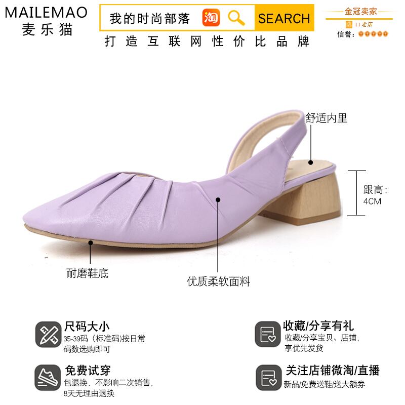 厚いヒール包頭女性の靴2020新しい夏のファッションローヒールミュラー靴ヨーロッパとアメリカの野生の摩耗の女性のサンダルとスリッパ 部族の婦人靴8161573