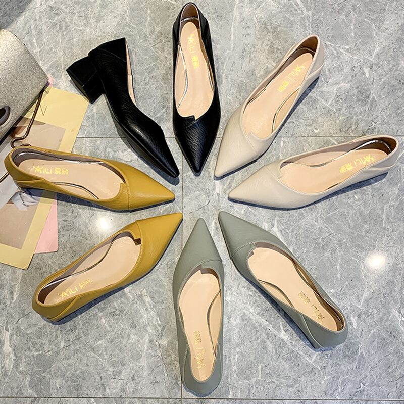厚いヒールの女性の2つのハイヒール2019新しい春と秋のバージョンワイルドポインテッドスモールフレッシュ6cmミッドヒールシューズ 部族の婦人靴5073191