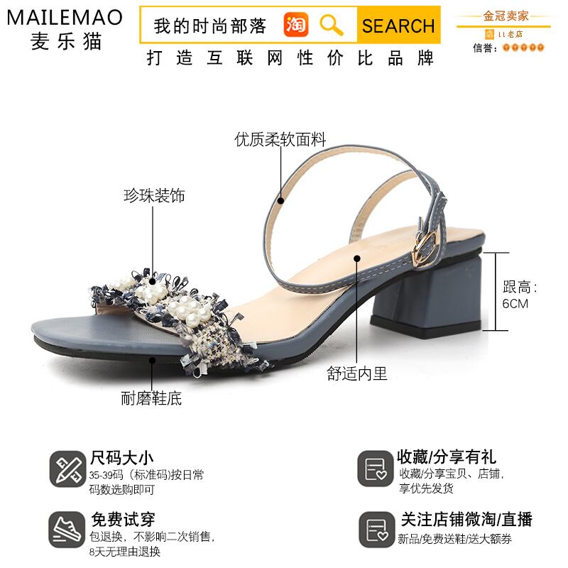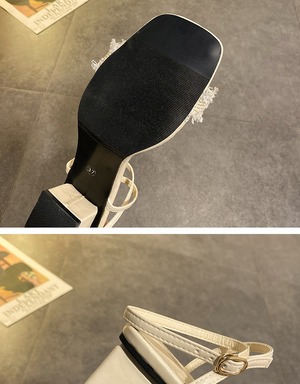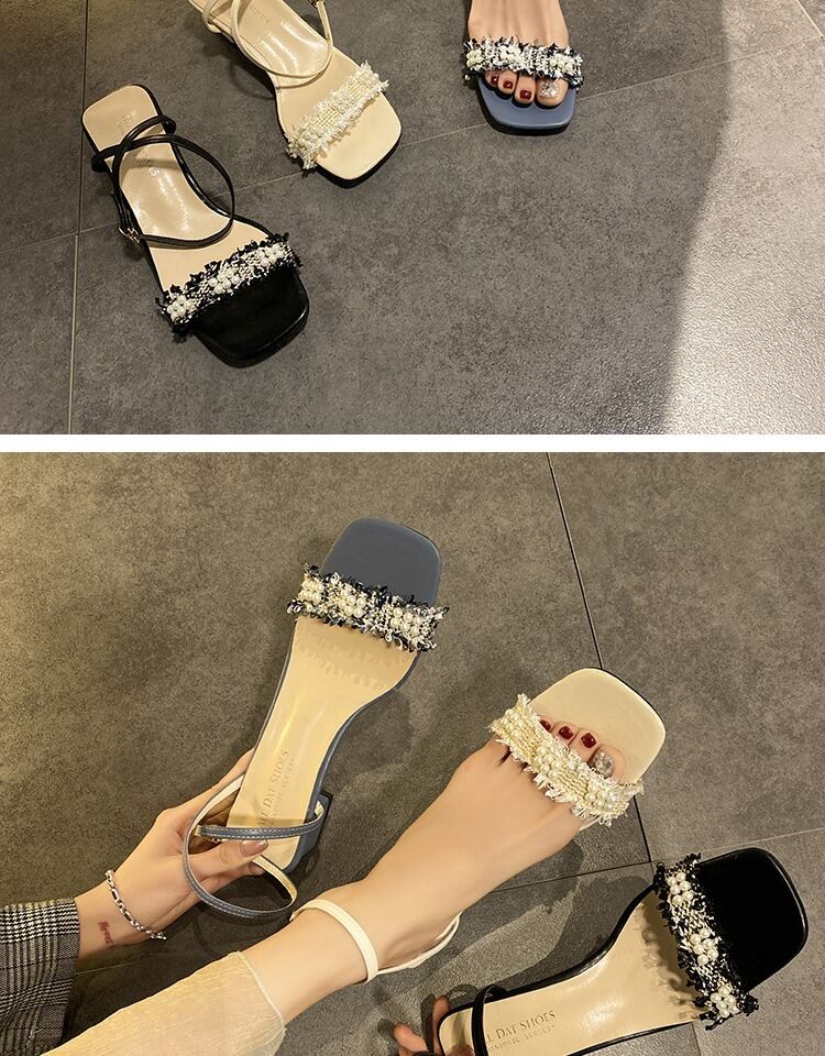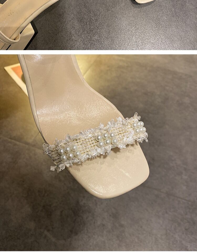 1つの単語のバックル厚いヒールオープンつま先サンダル2020新しい野生のファッション女性の夏の妖精風真珠ハイヒールサンダル 部族の婦人靴2878140