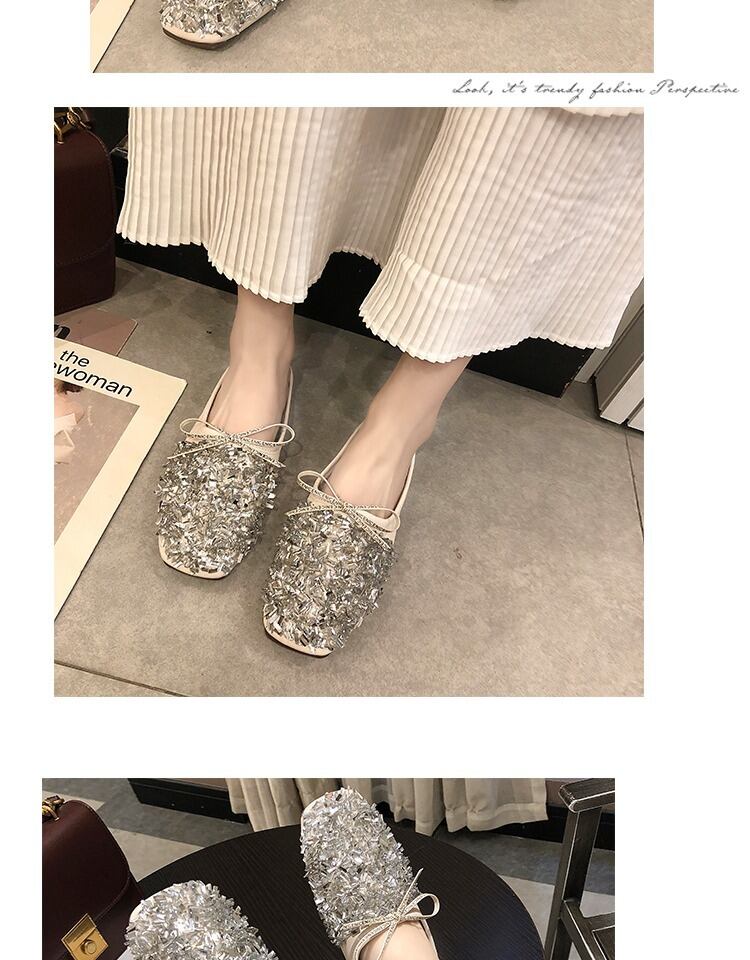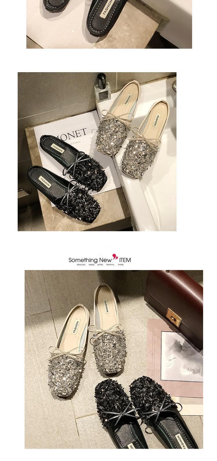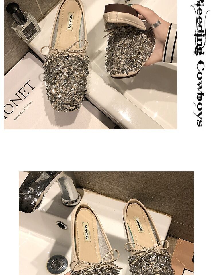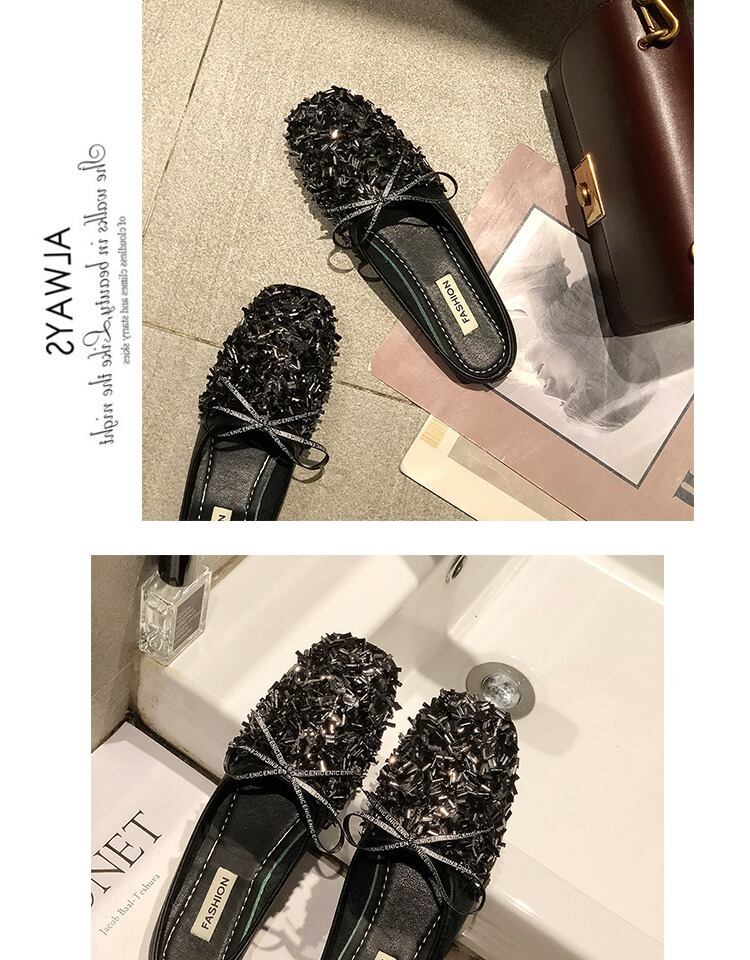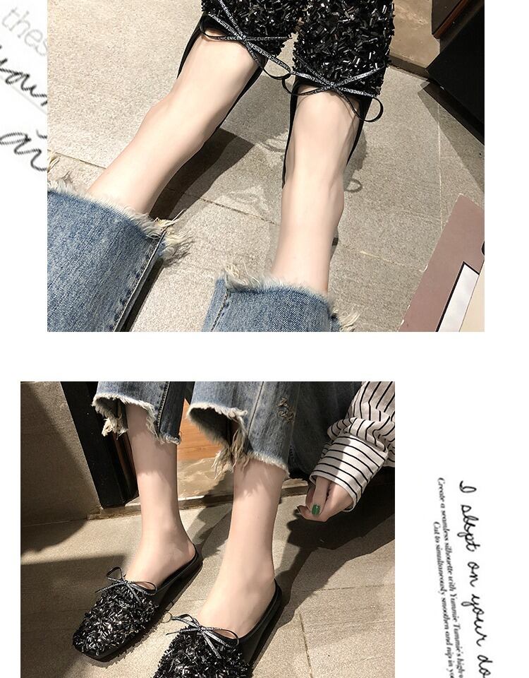 包頭ハーフスリッパ女性2020春の新しい野生のちょう結びの妖精の靴スクエアヘッドスパンコールエインスタイルミュラー靴 部族の婦人靴9926758