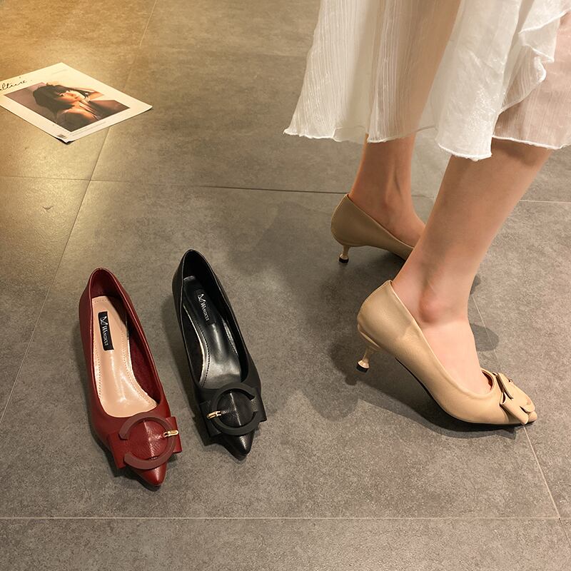 ヒールの女性の野生のかかとの高い女性の靴2020新しい春浅い口先のとがった妖精ネット赤いファッション靴 部族の婦人靴0030377