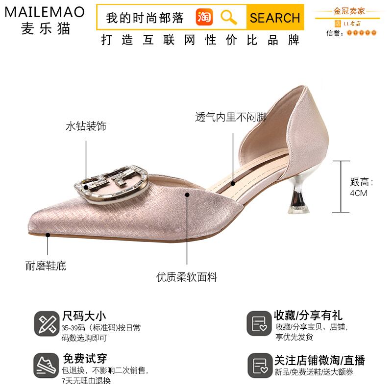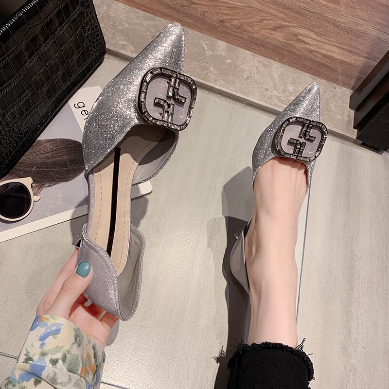 かかとの女性2020春の新しいバージョンの野生のファッションラインストーン中空浅い口の単一の靴ネット赤い尖った女性の靴 部族の婦人靴1734649