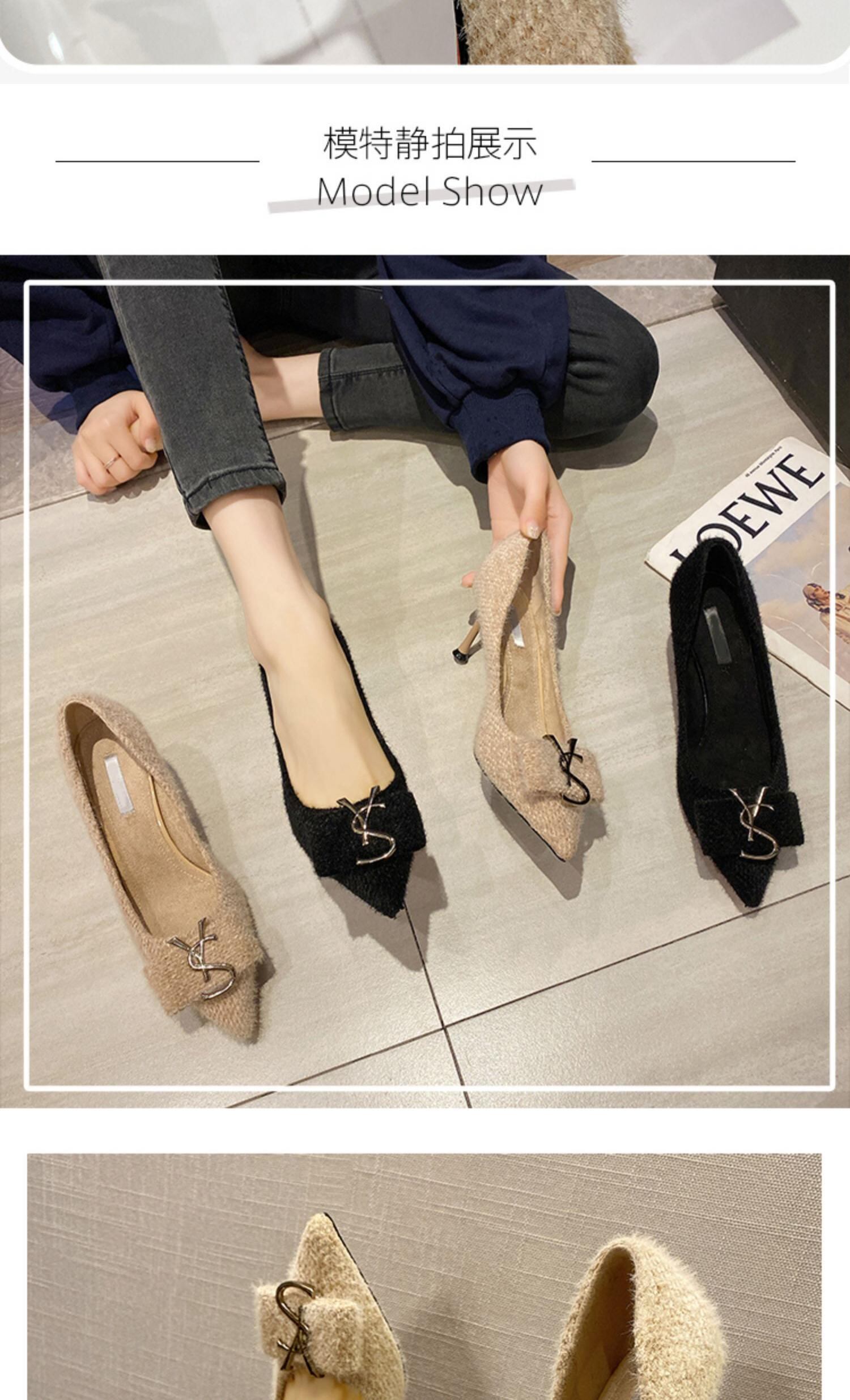ヒールの女性の尖った薄いかかと2019秋と冬の新しい黒のエチケット女性の靴プロネット赤セクシーなハイヒールの靴 部族の婦人靴7687491