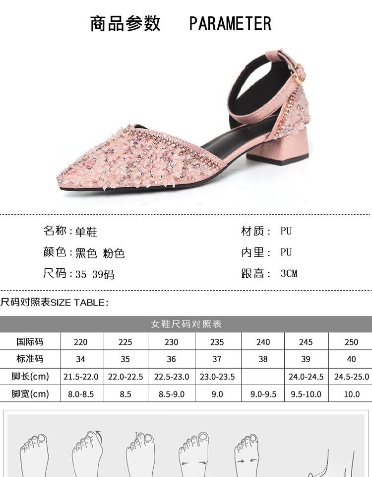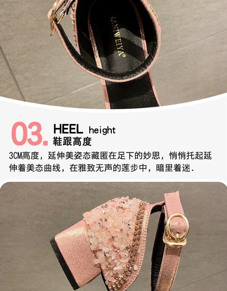 ファッションのサンダル女性2020春と夏の新しいバージョンは、単一の靴の女性の潮で太い野生のラインストーン包頭妖精のスタイルを指摘しました 部族の婦人靴2603198