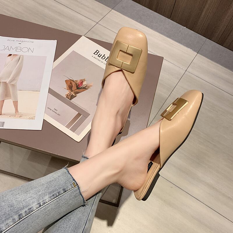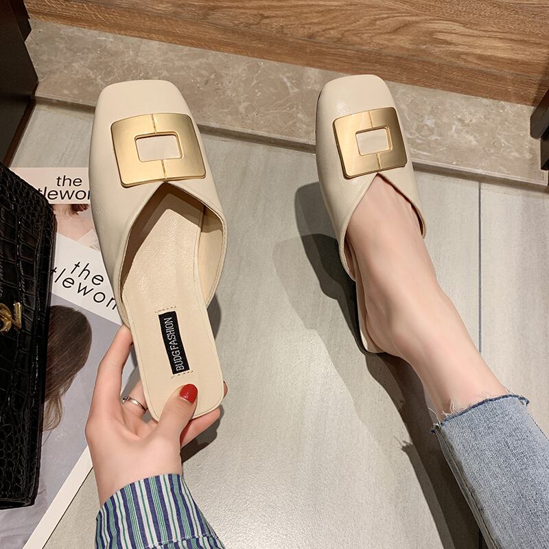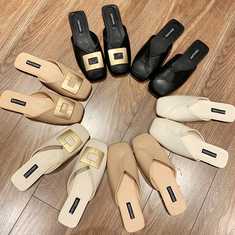 insポートスタイル包頭ハーフスリッパ女性アウター2020夏の新しいローヒールファッション小さなスクエアヘッドミュラーシューズハーフドラッグ 部族の婦人靴3137590
