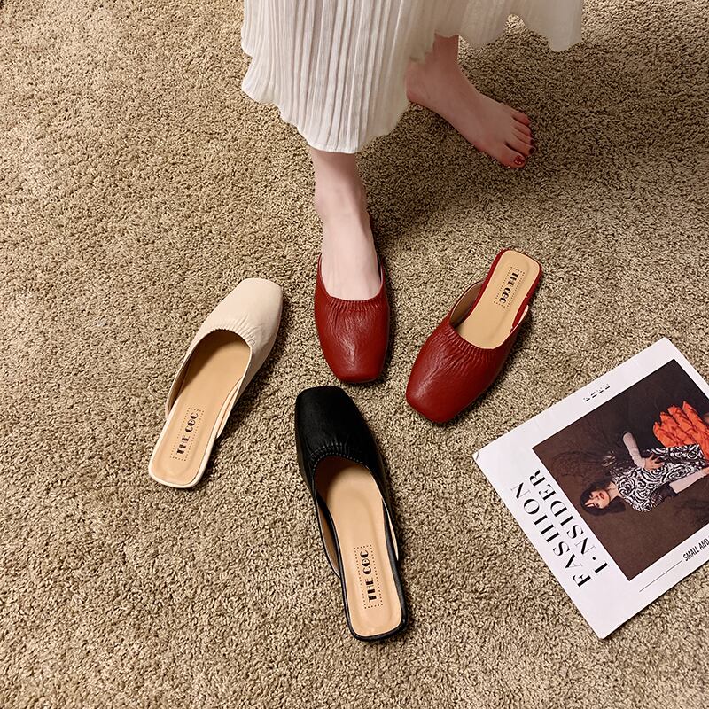 包頭ハーフスリッパ女性2020新しいアウターファッション野生のネット赤の正方形のヘッドフラットボトムノンスリップ妖精スタイル 部族の婦人靴7876801