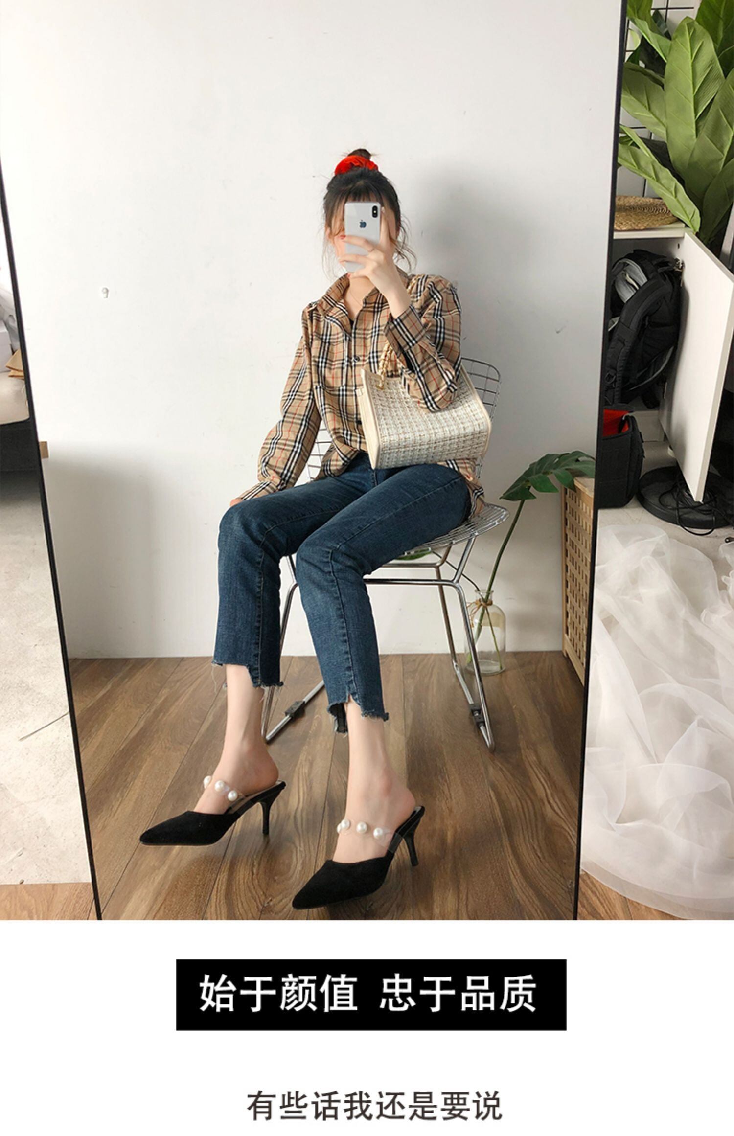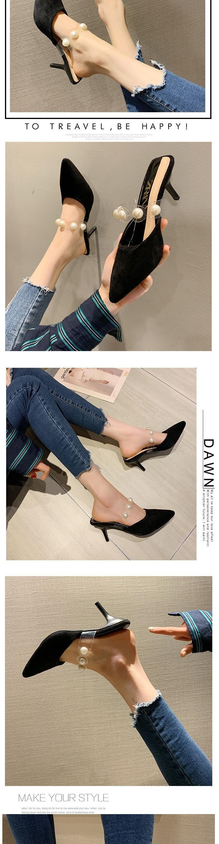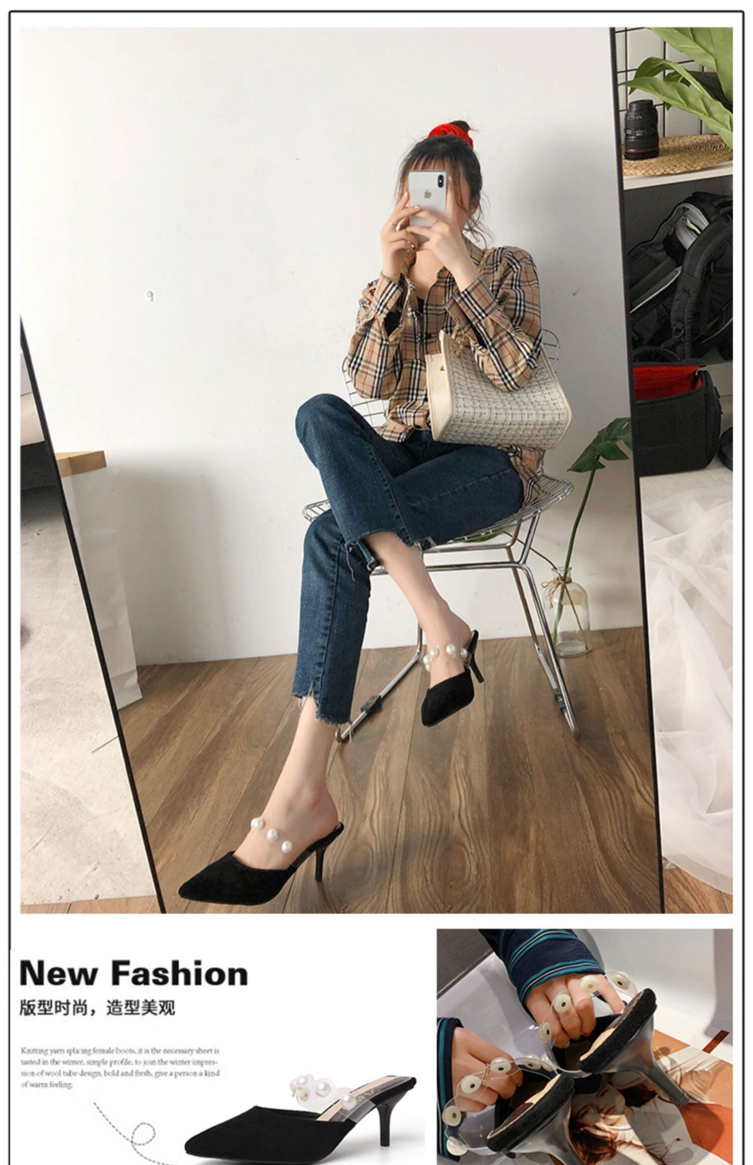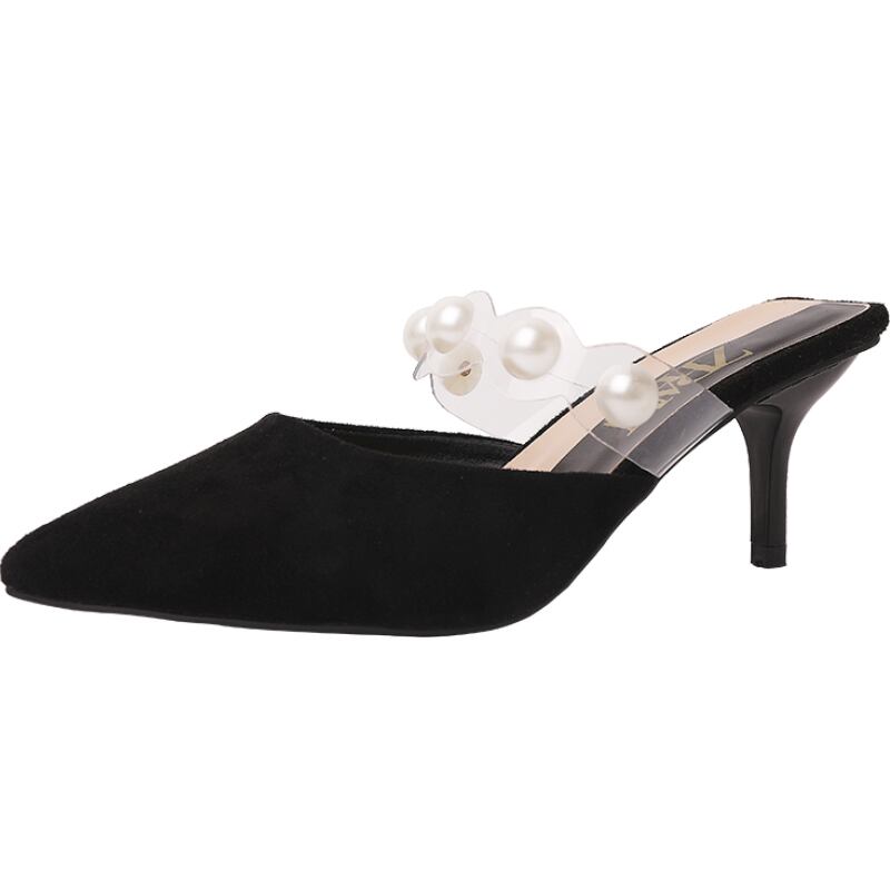 ヒールスリッパ2020春の新しいファッションワイルドパールフェアリースタイルファインヒールポインテッドセミドラッグサンダルとスリッパレディース 部族の婦人靴9780564