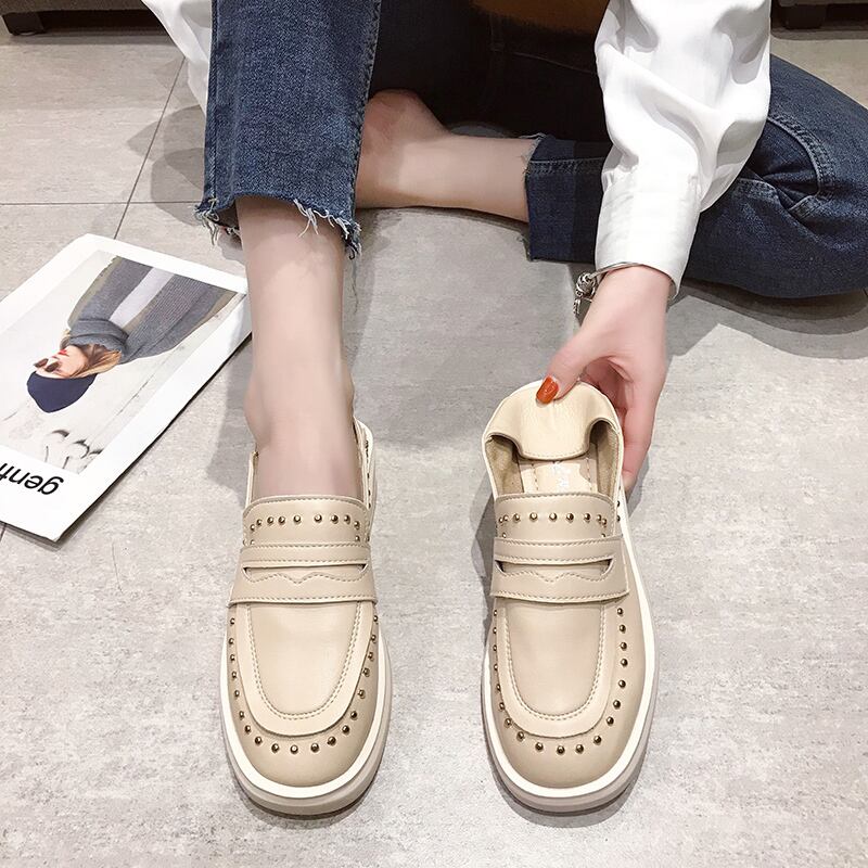 単一の靴女性2020春新しい英国スタイルのファッション小さな革の靴リベット厚底ローファー2つのカジュアルな女性の靴 部族の婦人靴9951318