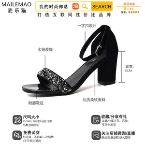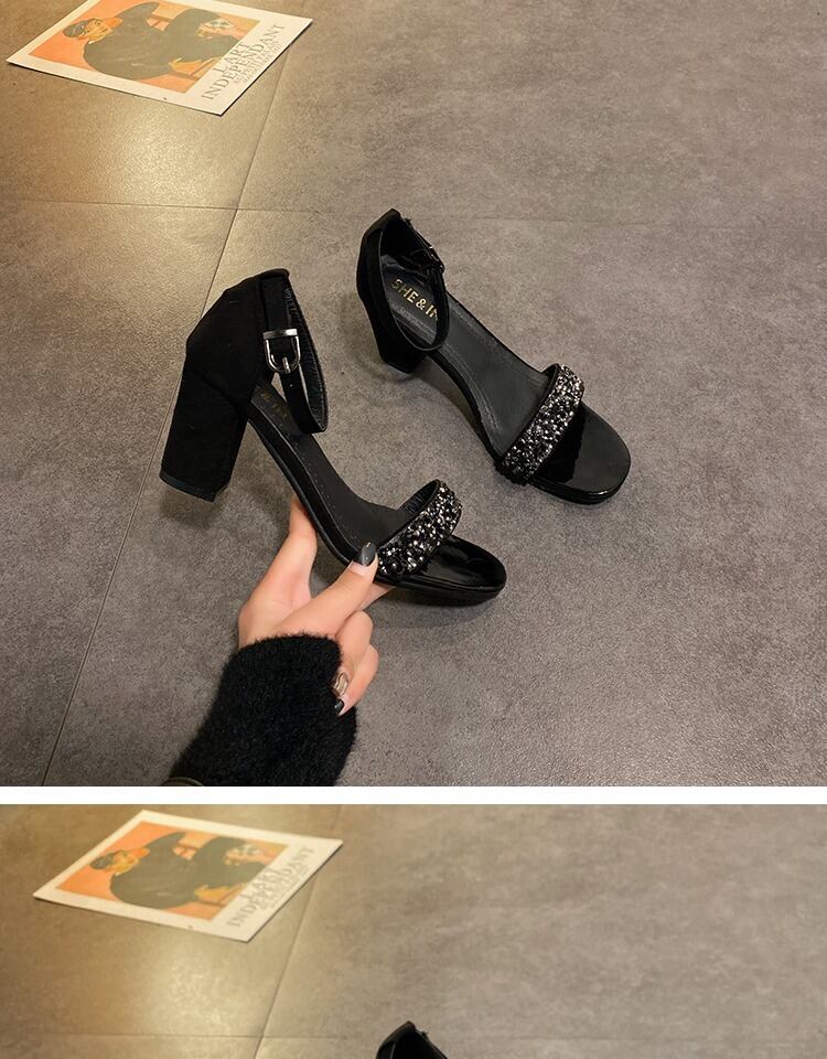 サンダル女性2020夏の新しいファッションハイヒール厚ヒールバックルラインストーンカジュアル野生の妖精風ローマの靴 部族の婦人靴0348073