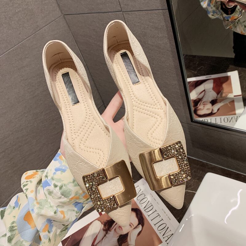 シングルシューズレディース2020新春バージョンのワイルドネットレッド浅い口スクープシューズ尖ったフラットボトムワンペダルビーニーシューズレディース 部族の婦人靴2420244