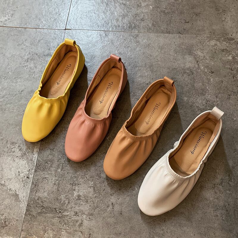 2019夏の新しいソフトレザーおばあちゃんの靴ネット赤快適な卵ロール靴エンドウ靴ソフトボトムフラットボトム秋の靴女性 部族の婦人靴9405581