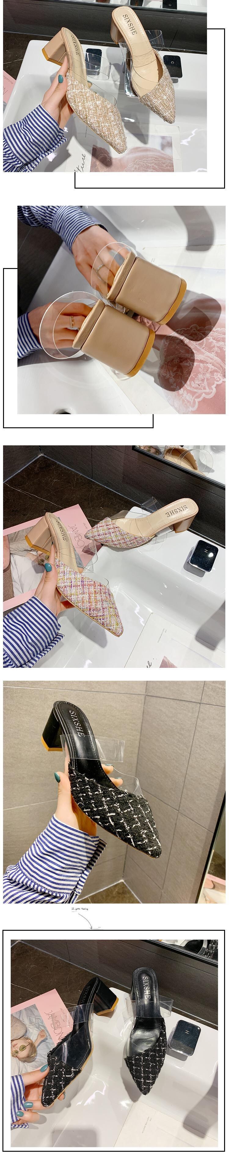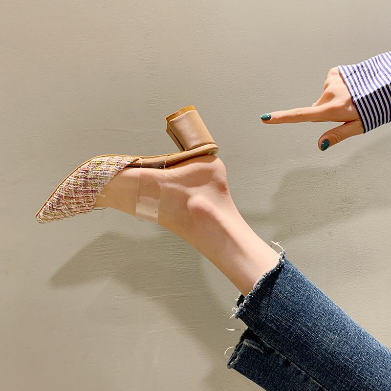 包頭スリッパ女性の妖精風2020夏の新しい尖ったレトロ厚いヒールのミュールハイヒールの穏やかなイブニングシューズ 部族の婦人靴3435868