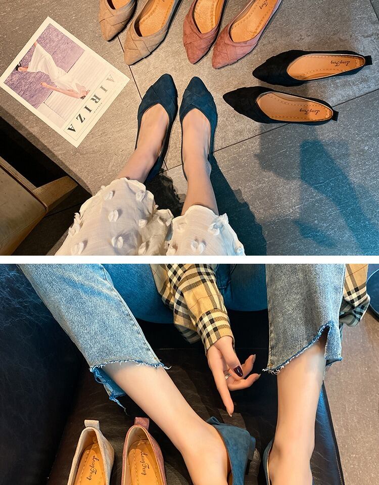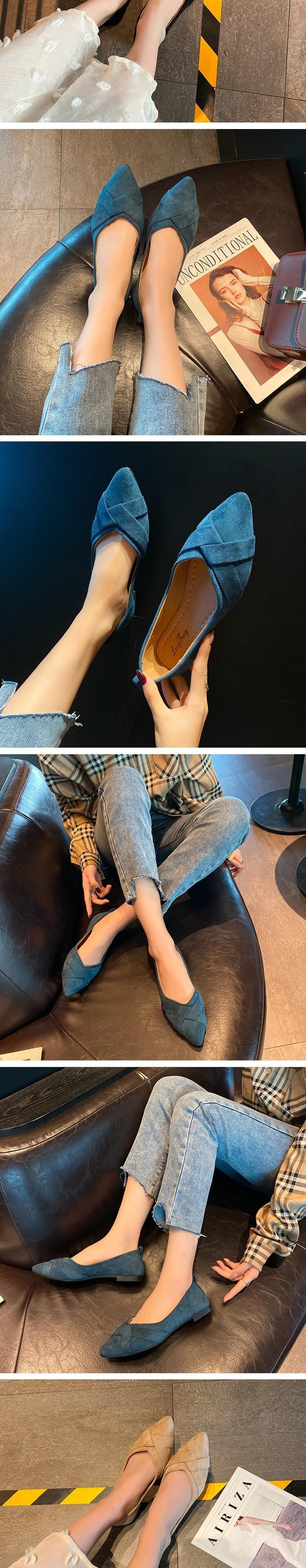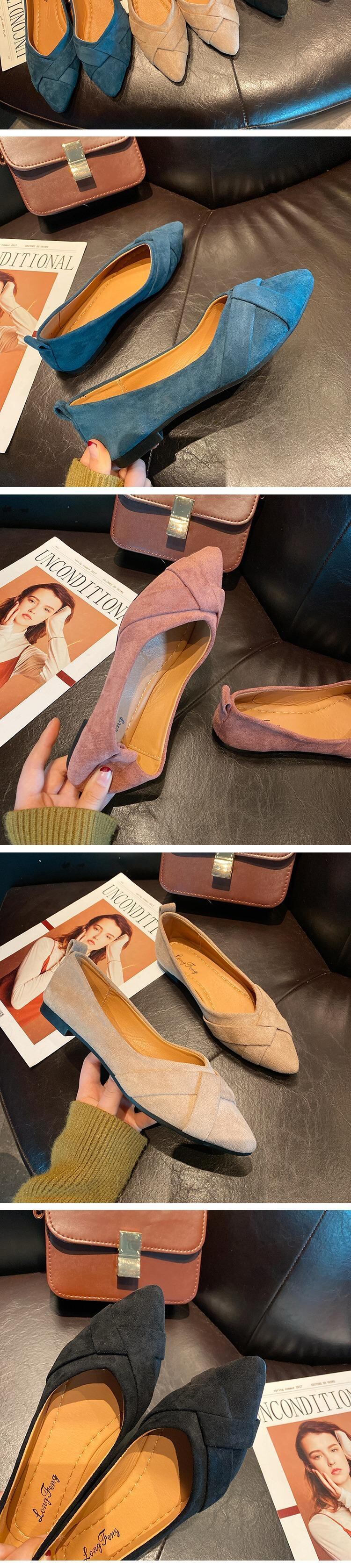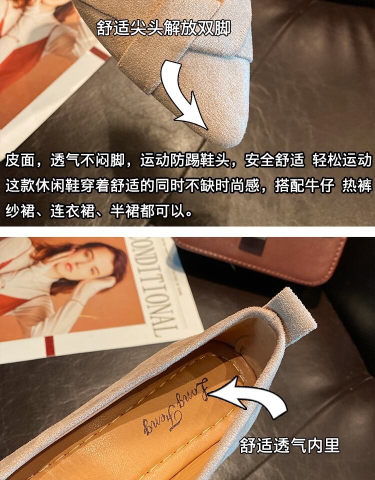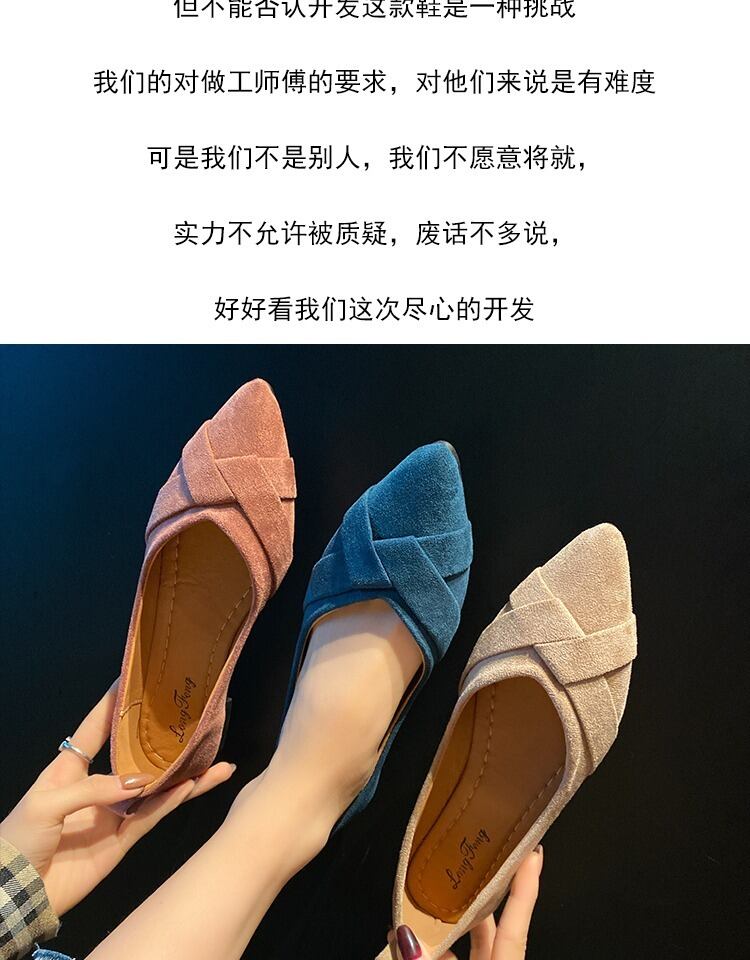 先のとがったつま先フラットシューズ女性2020年春新しいスエードシンプルな作業靴女性の快適な浅い口野生の作業靴 部族の婦人靴3691863