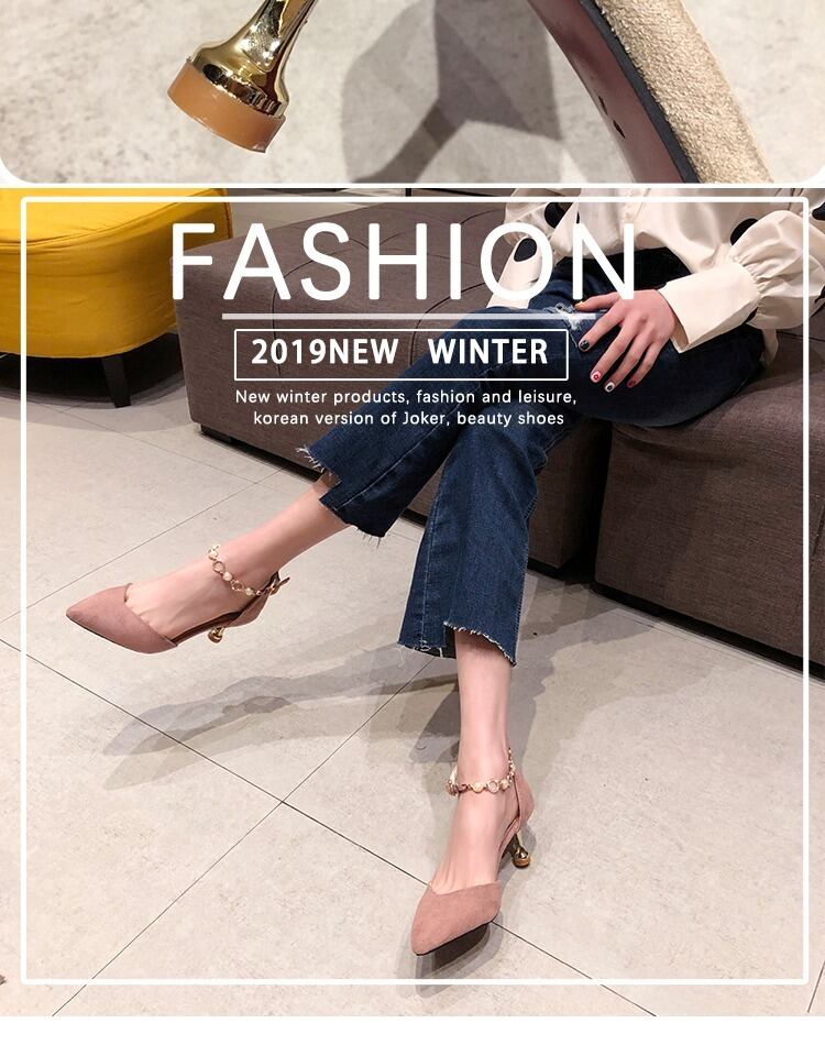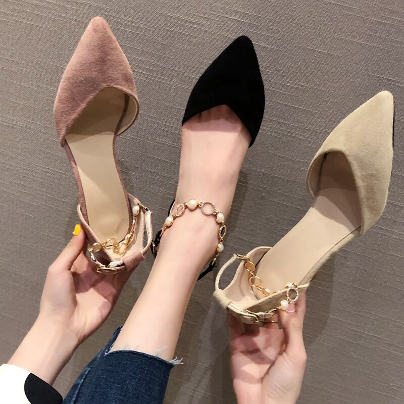 2020年春夏バージョンのスエードバックルの浅い口が尖ったフレンチハイヒールサンダルの女性 部族の婦人靴1818325