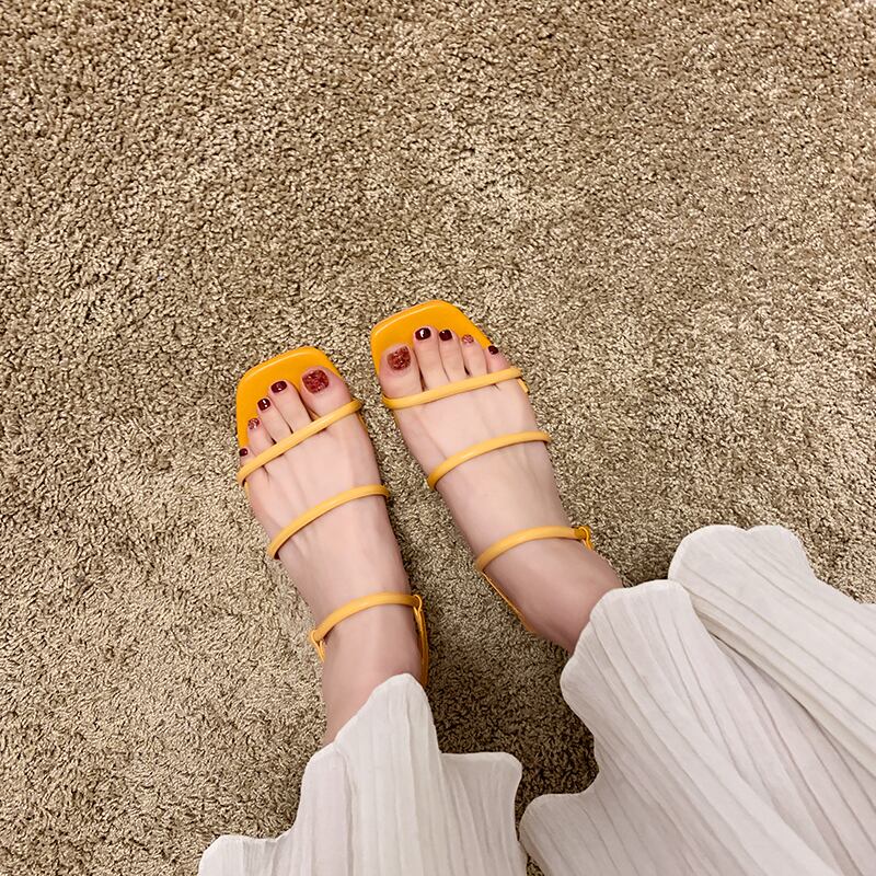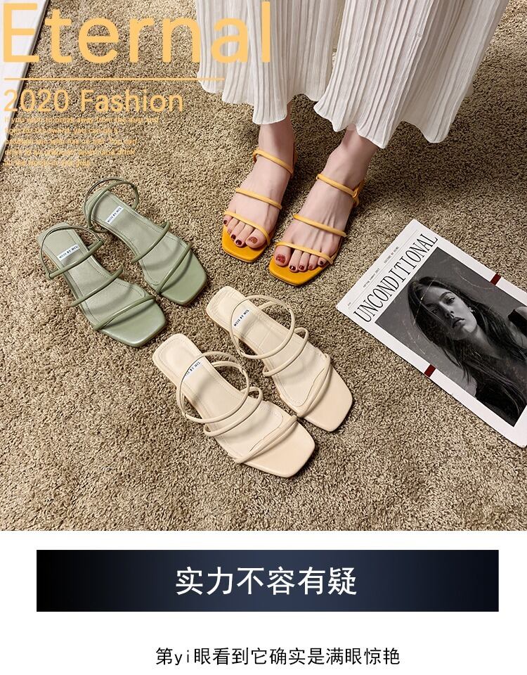 足サンダル女性の妖精風2020新しい女性の夏の薄いストラップファッション厚いヒールローマンシューズミドルヒール野生のサンダルのセット 部族の婦人靴4601431