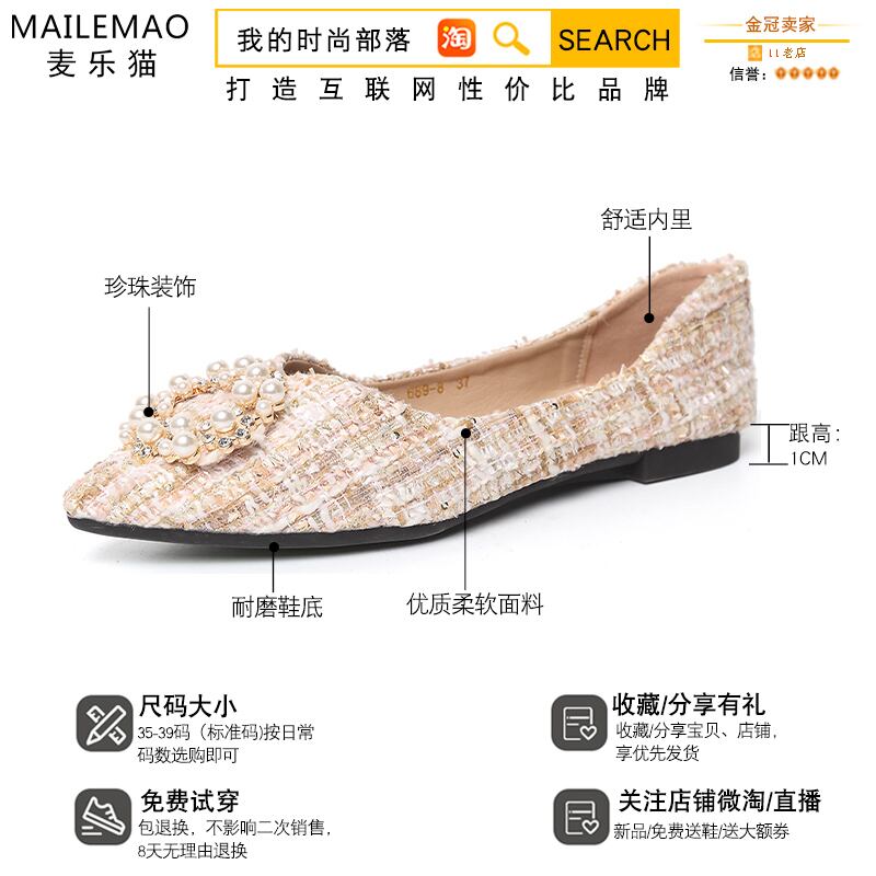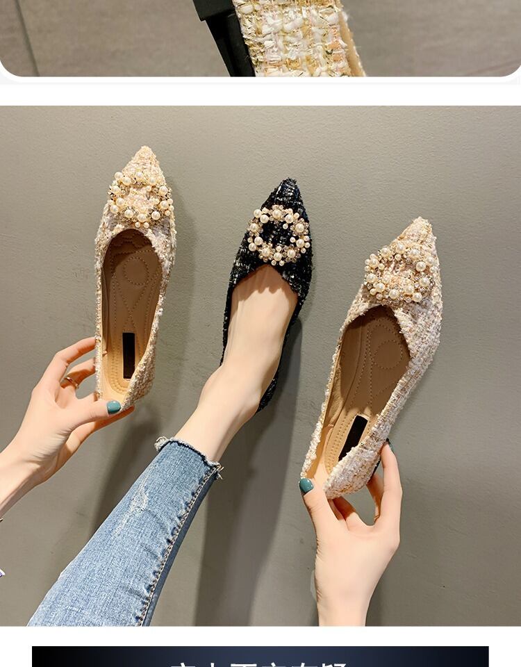 シングルシューズレディース2020春新しいファッション先のとがった尖ったフラットスクープシューズパールワイルドワンペダルビーニーシューズレディース 部族の婦人靴6865342