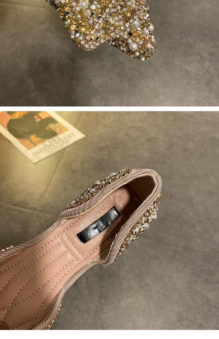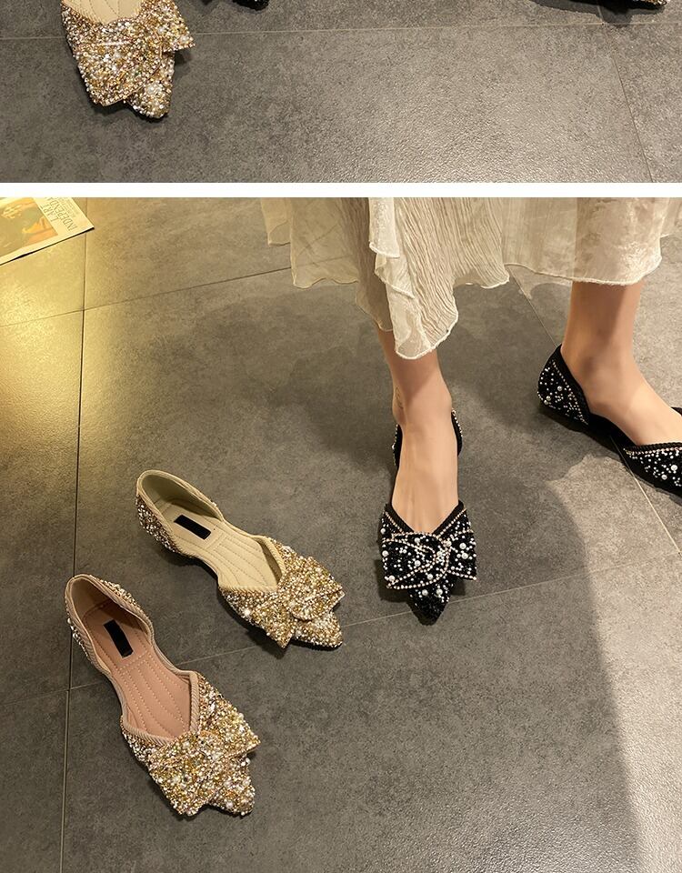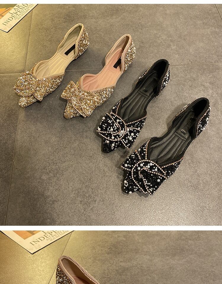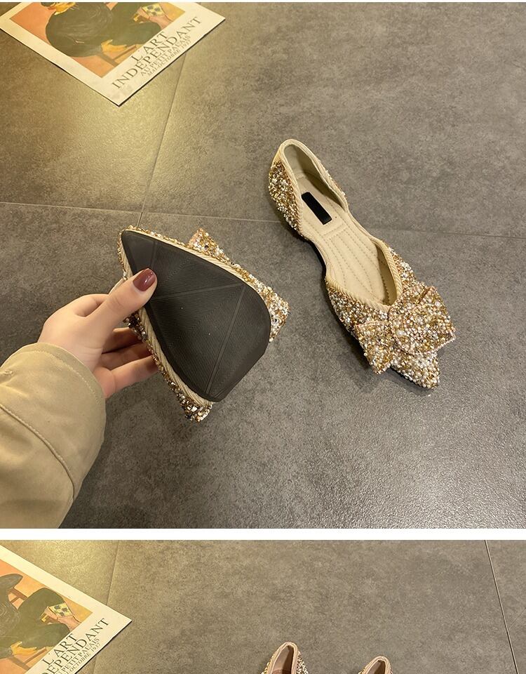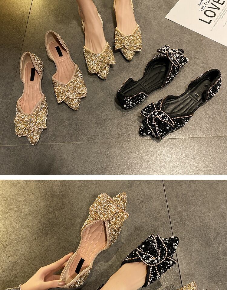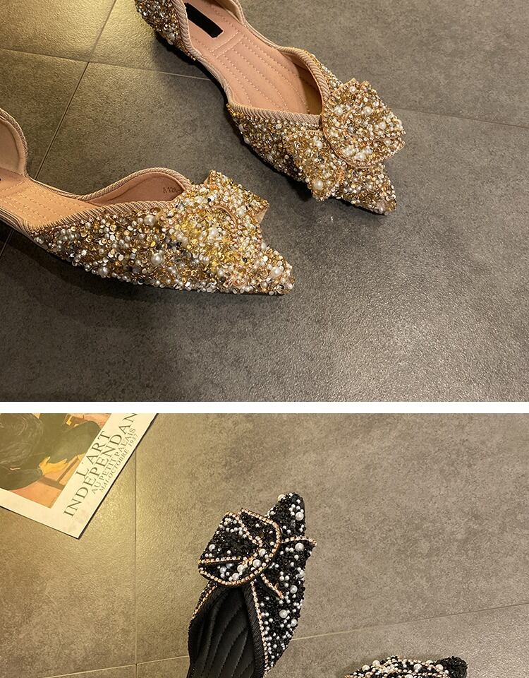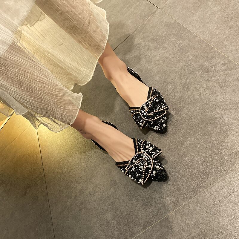 単一の靴女性2020新しい夏のファッション指摘真珠浅い口サンダルネット赤いスパンコール弓野生の靴 部族の婦人靴0387338