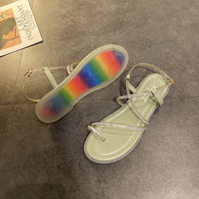 ラインストーンサンダル女性2020年春と夏の新しいファッションワイルドネット赤イン潮妖精スタイルフラットレディースシューズ 部族の婦人靴2050884
