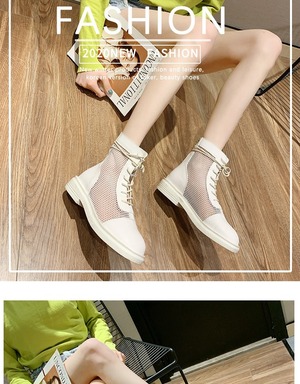 ネット赤中空サンダル女性2020新しい英国スタイルローマショートブーツインスメッシュバックジッパーマーチンブーツ 部族の婦人靴8713089