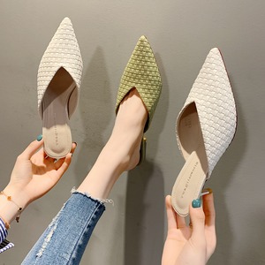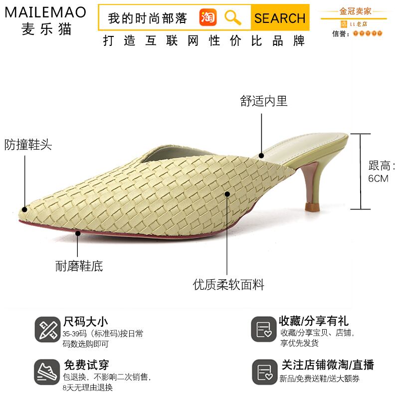 スリッパ女性は包頭ハーフドラッグシングルシューズオールマッチネットレッドスカートハイヒールワンペダルファインヒールミュールを着用 部族の婦人靴8239879