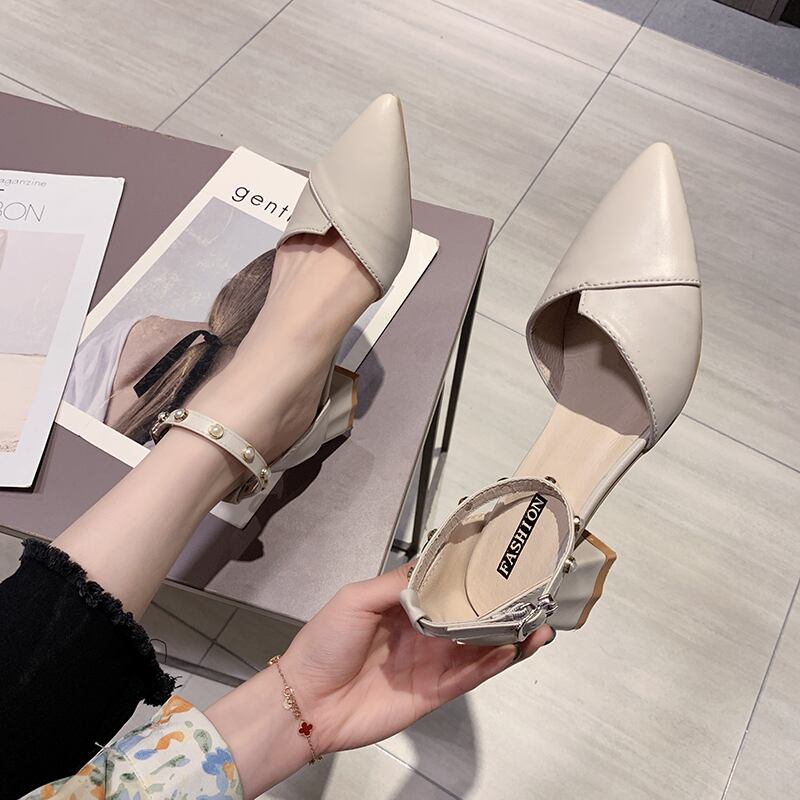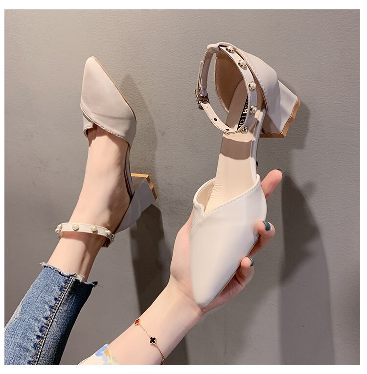 真珠の尖ったネット赤い野生の妖精風の厚いヒールの女性のサンダル女性2020夏の新しいinsバージョン 部族の婦人靴9822136