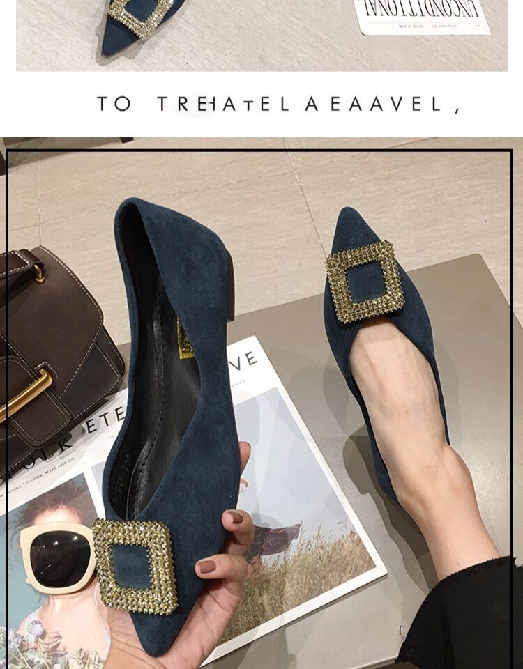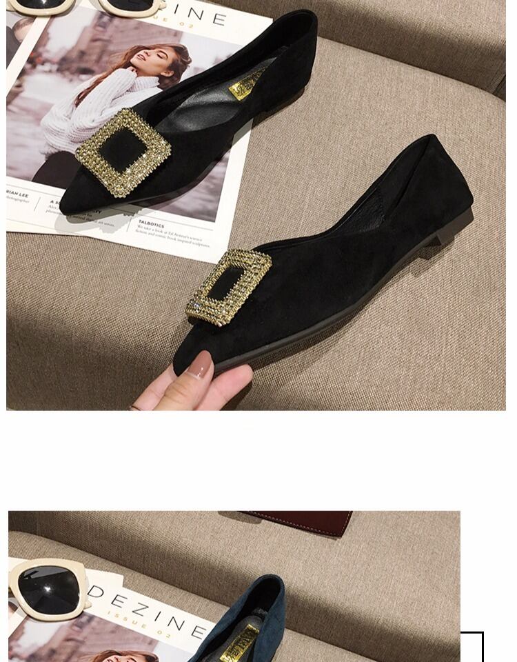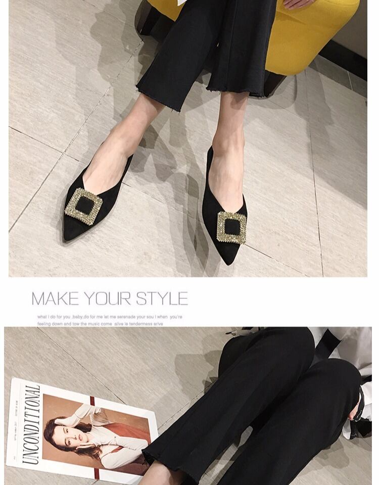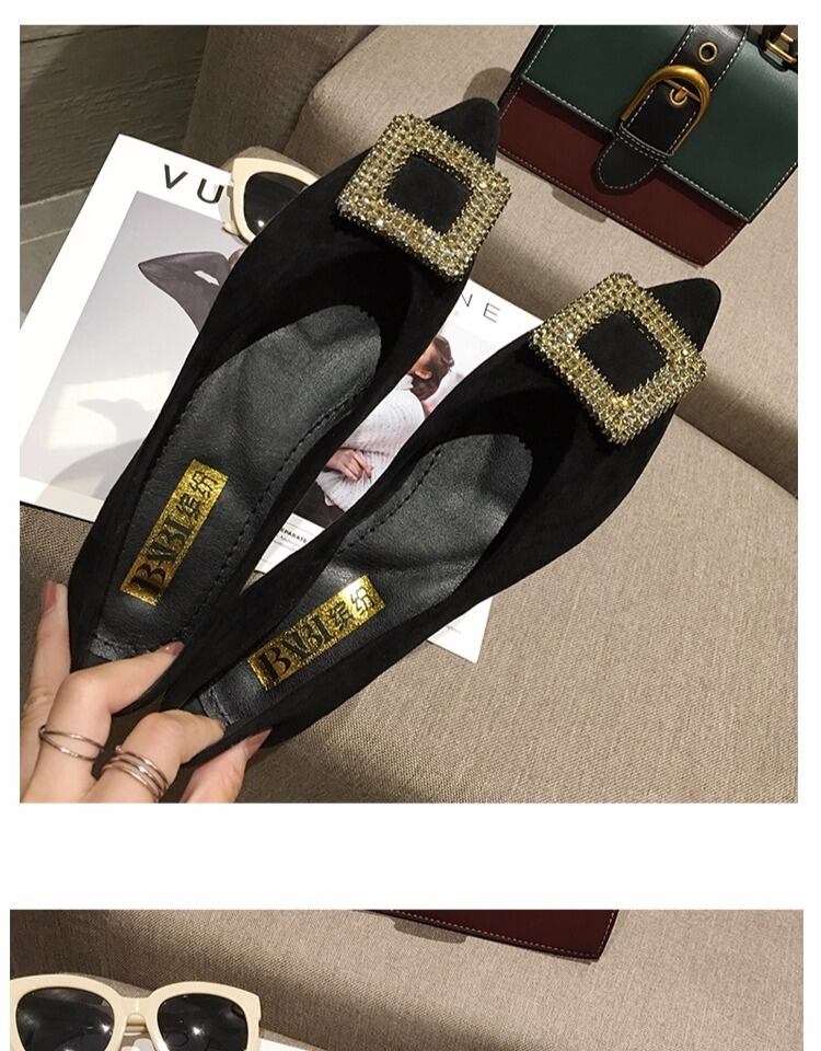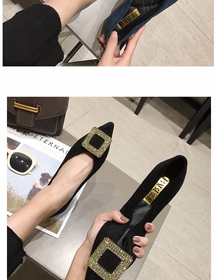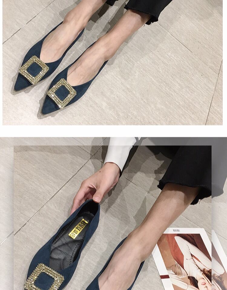 シングルシューズレディース2020春新しいネットレッドイブニングイブニングウィンドポインテッドラインストーンワイルドレディースシューズフラットボトム四季豆の靴 部族の婦人靴7486331