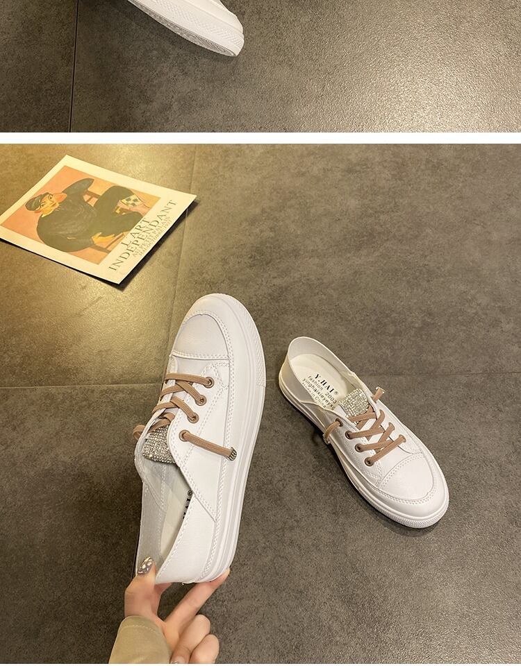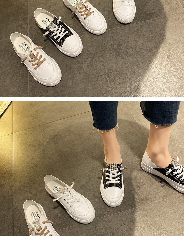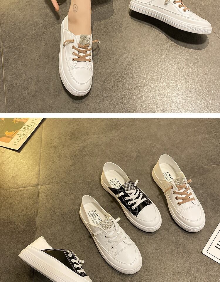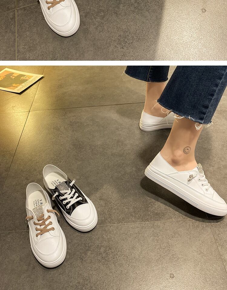 できる白い靴女性の潮2020春新しいラインストーン野生学生カジュアルキャンバスシューズ1ペダル2摩耗ボードシューズ 部族の婦人靴8451976