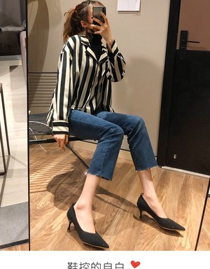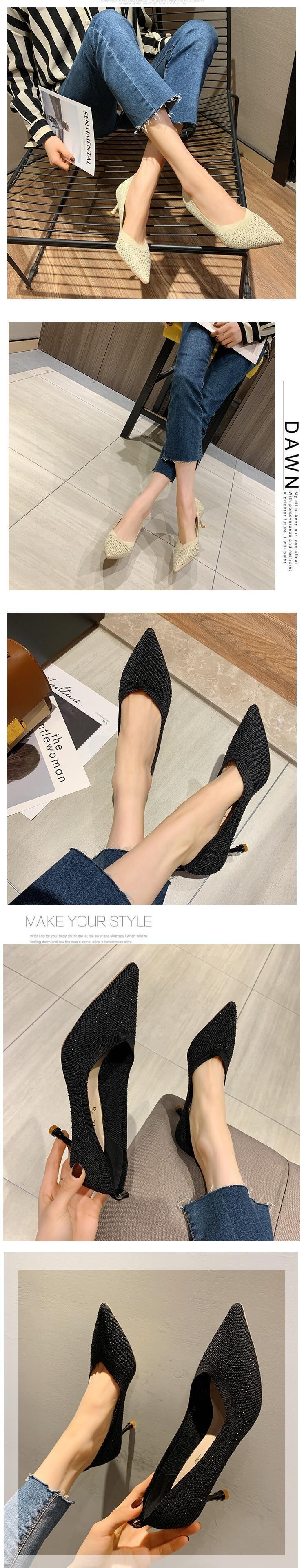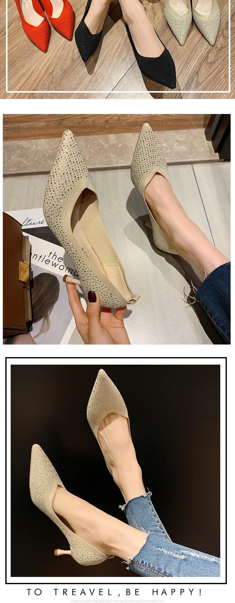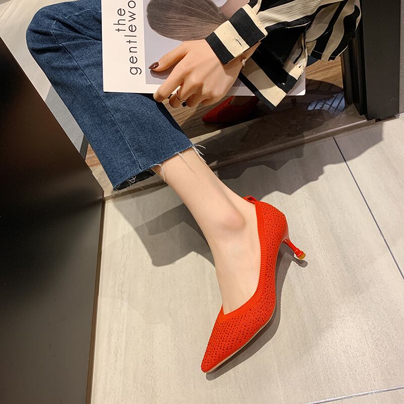 スティレットヒール女性2020春新しいネット赤ニット浅い口先のとがったメッシュサーフェスワンペダルレディースシングルイン潮 部族の婦人靴9439233
