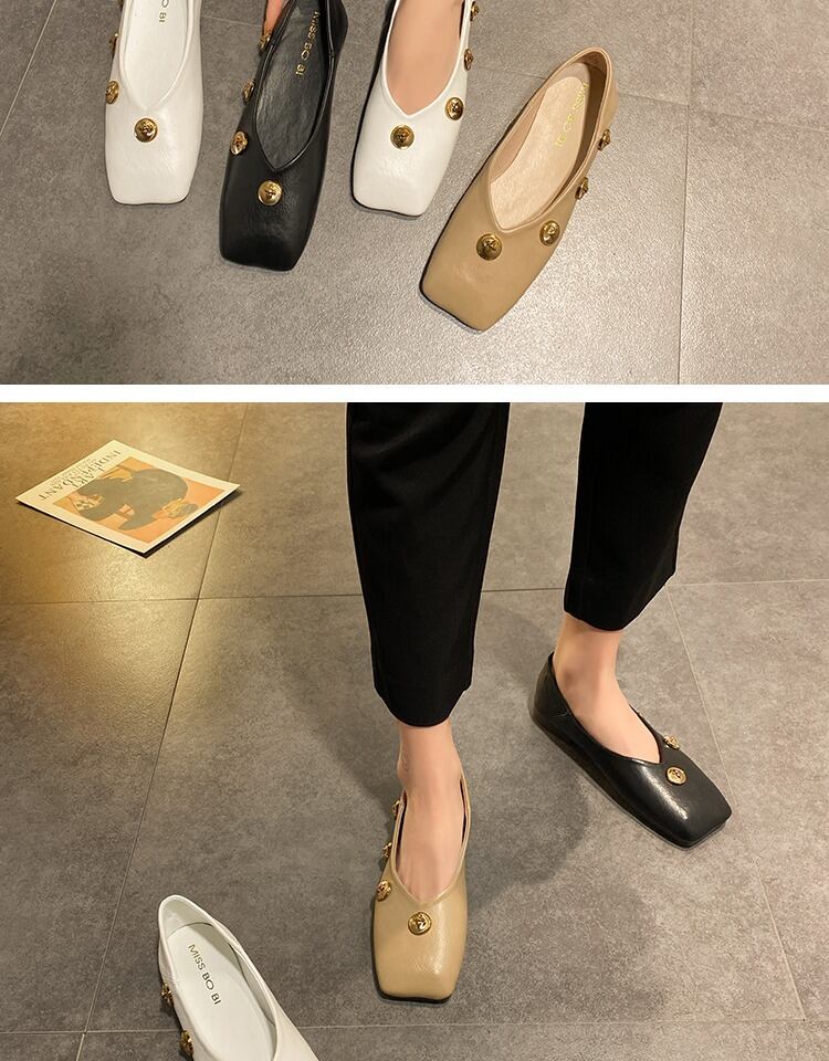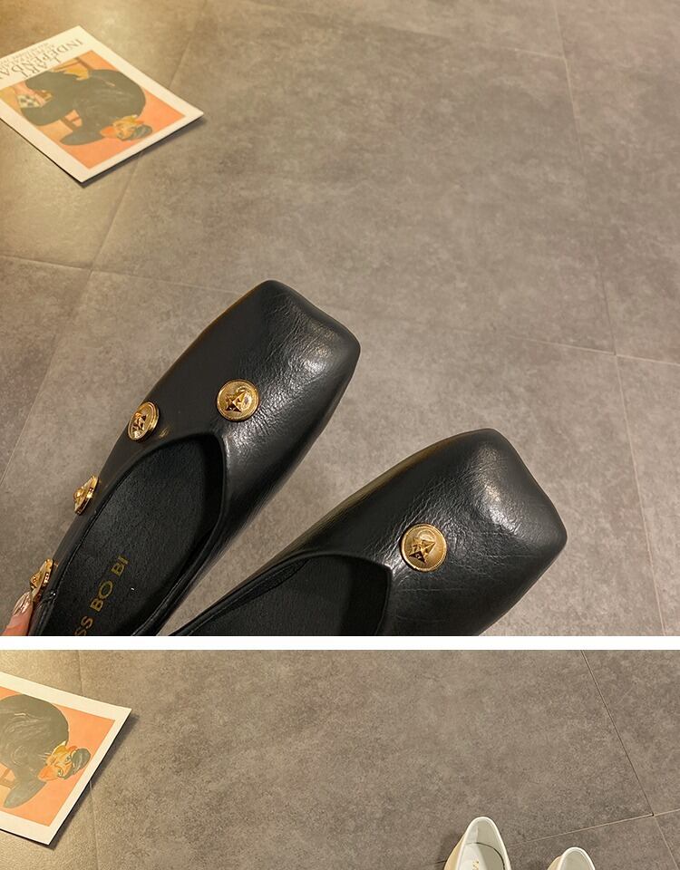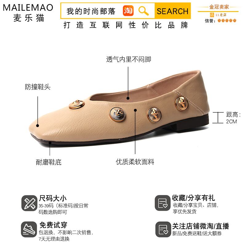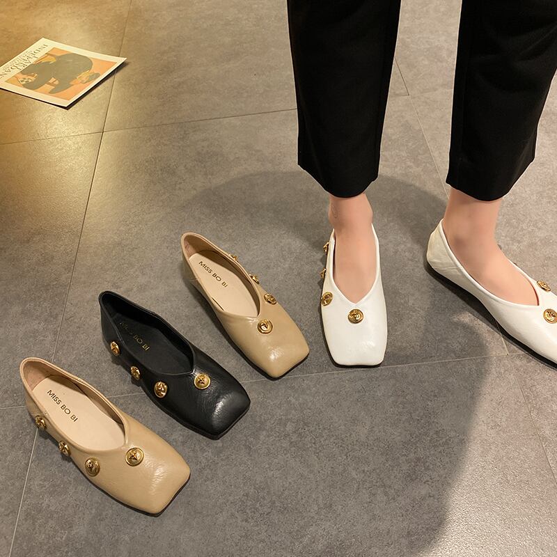女性の靴春と秋の単一の靴女性2020春新しい野生のフラット浅い口レトロスクエアヘッドスクープシューズソフトボトムおばあちゃんの靴 部族の婦人靴7635088