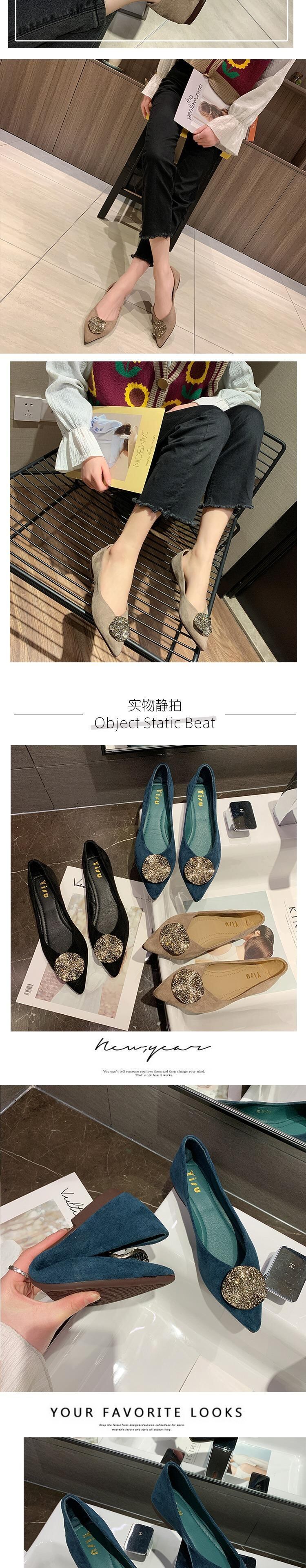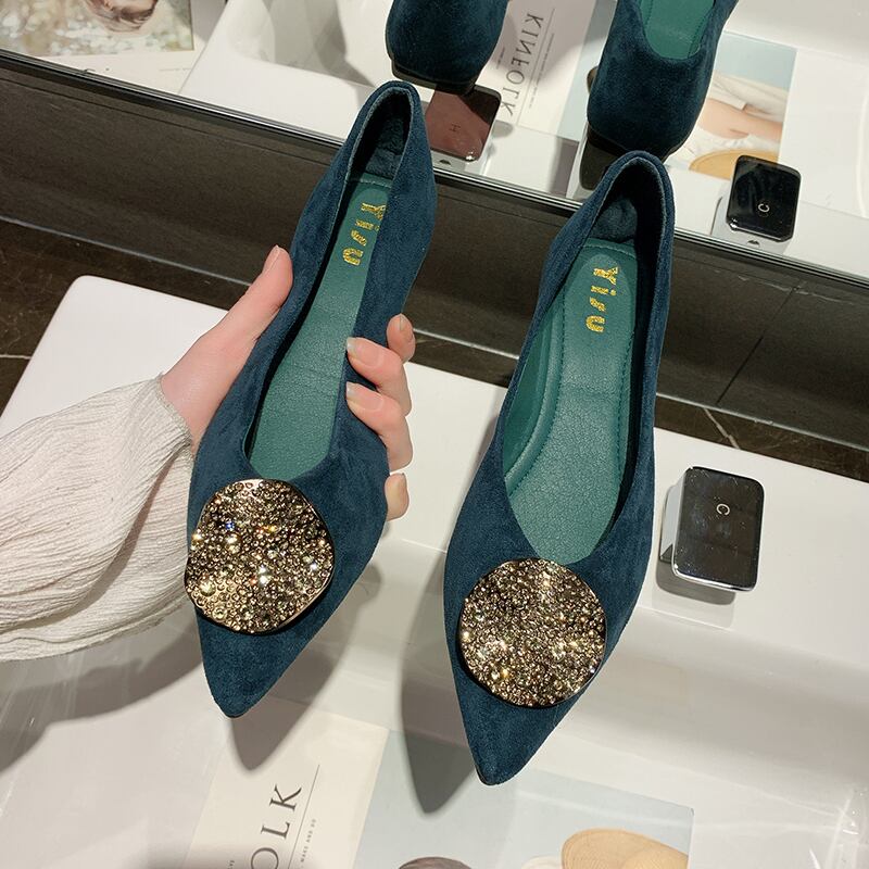 女性の靴春と秋の靴女性2020春モデル野生のフラット浅い口金属バックル指摘女性の片足エンドウ靴 部族の婦人靴2627587