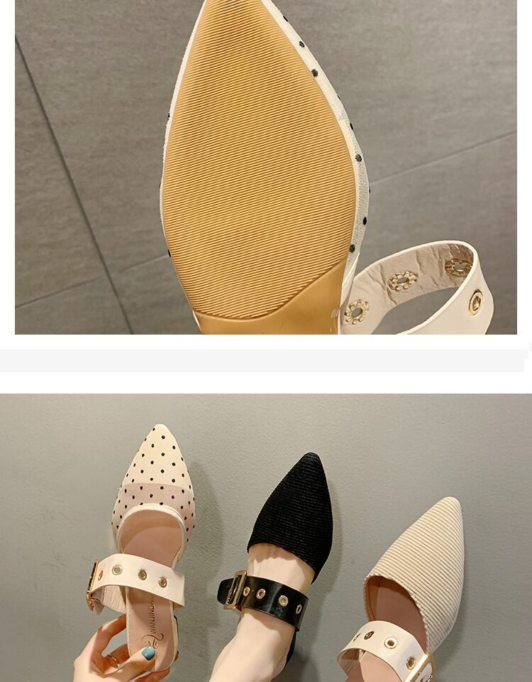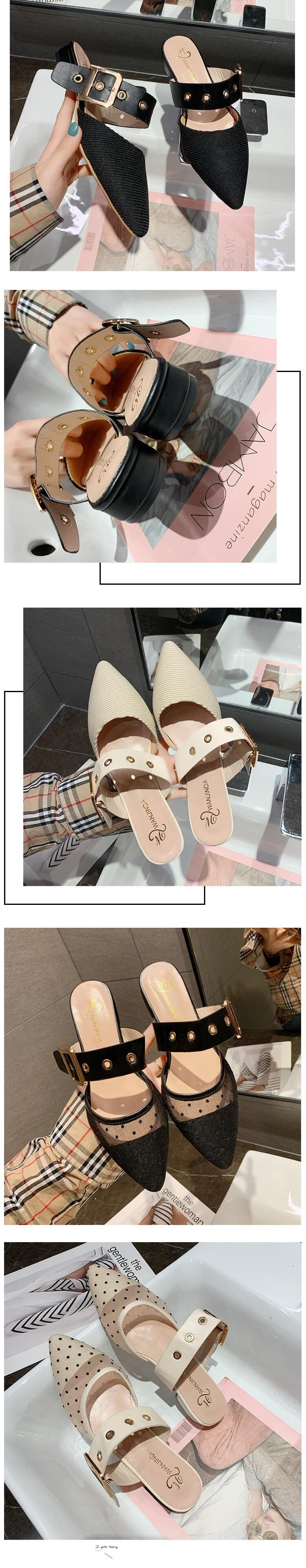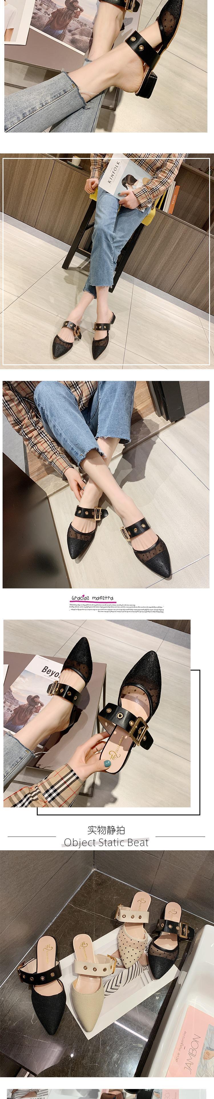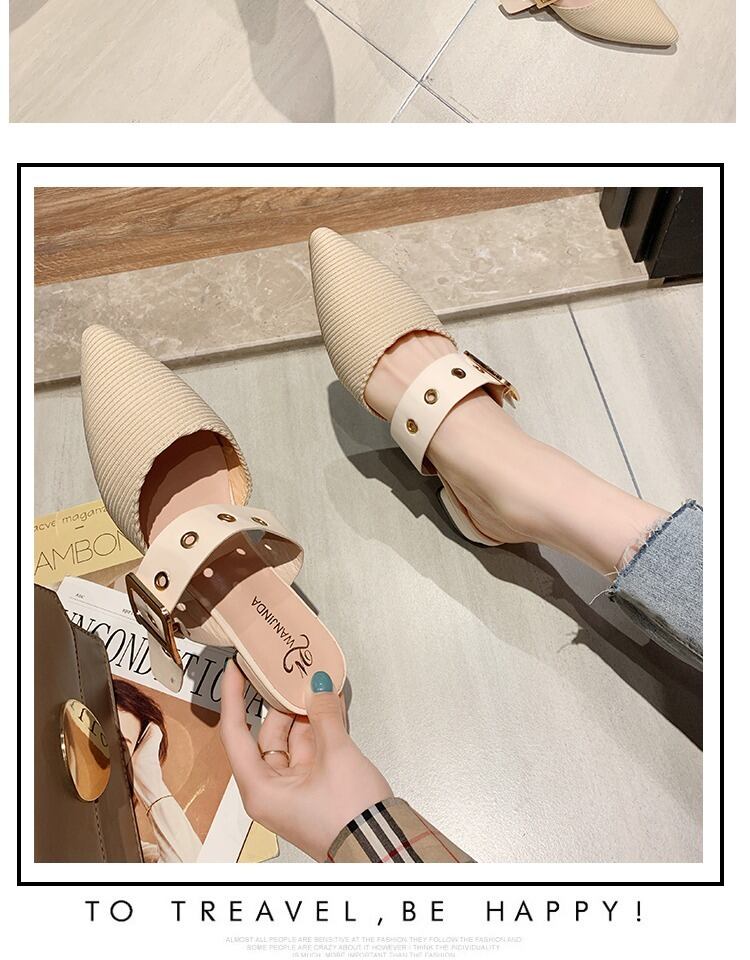 包頭セミスリッパ女性は2020年春と夏の新しい学生の野生の波の尖ったフラットミュラーの靴の女性を着用します 部族の婦人靴7841377