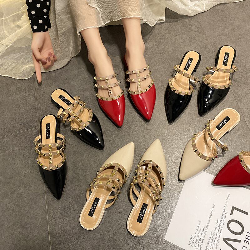 包頭セミスリッパの女性は、2020年の新しい春の野生の厚さを着て、ミュールの靴はつま先のサンダルの潮を指摘しました 部族の婦人靴4761237